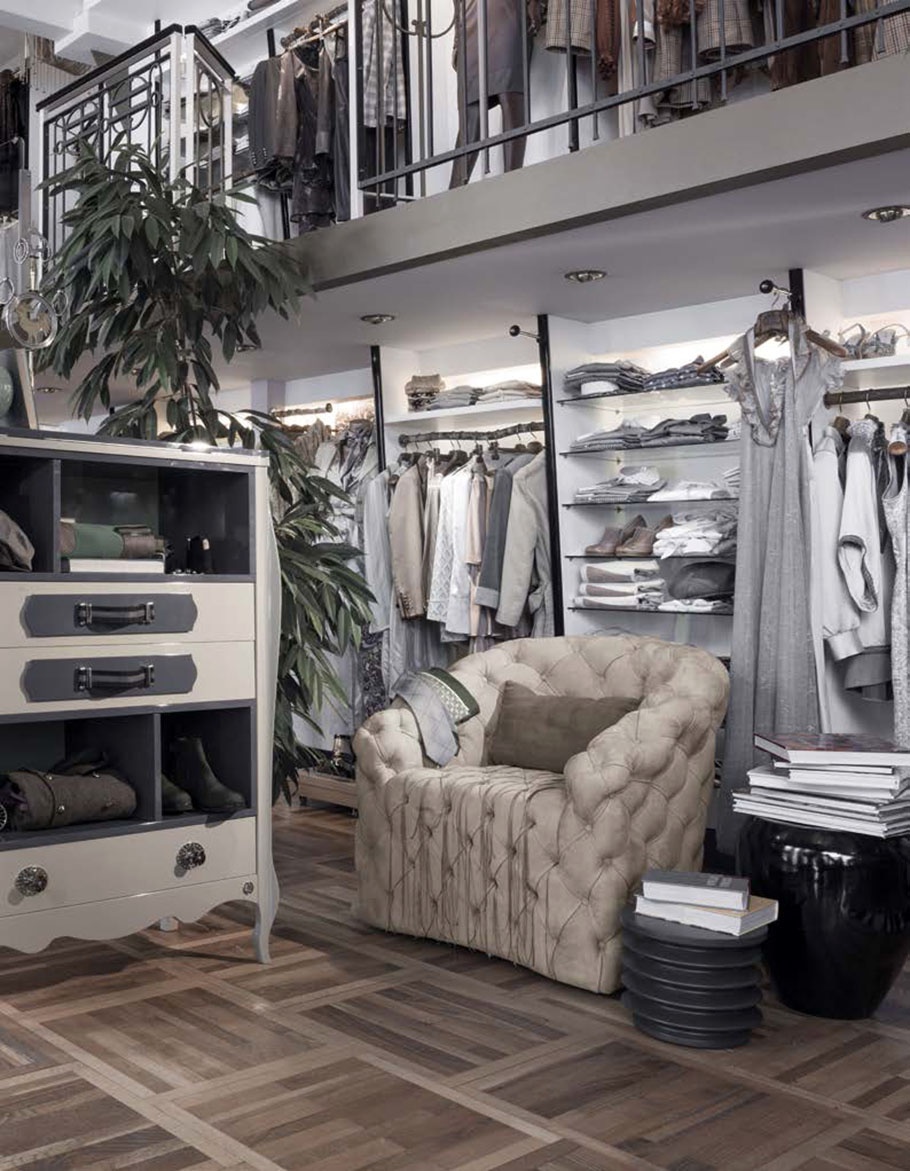 The chair frame is made of solid wood in fabric Capitonne Pelham, Moda