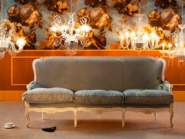 Three-seater sofa carved frame on the Ground, Moda