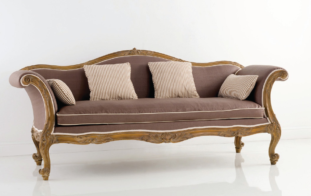 A double sofa from Italian manufacturer Chelini. The model is made in classic style. The frame and legs made from solid wood. The surface is treated with lacquer. Seat and back covered with textiles. Colors to choose from for the company directory. Seat cushion is removable. Filler - polyurethane foam. Decoration is the decorative carving handmade.
