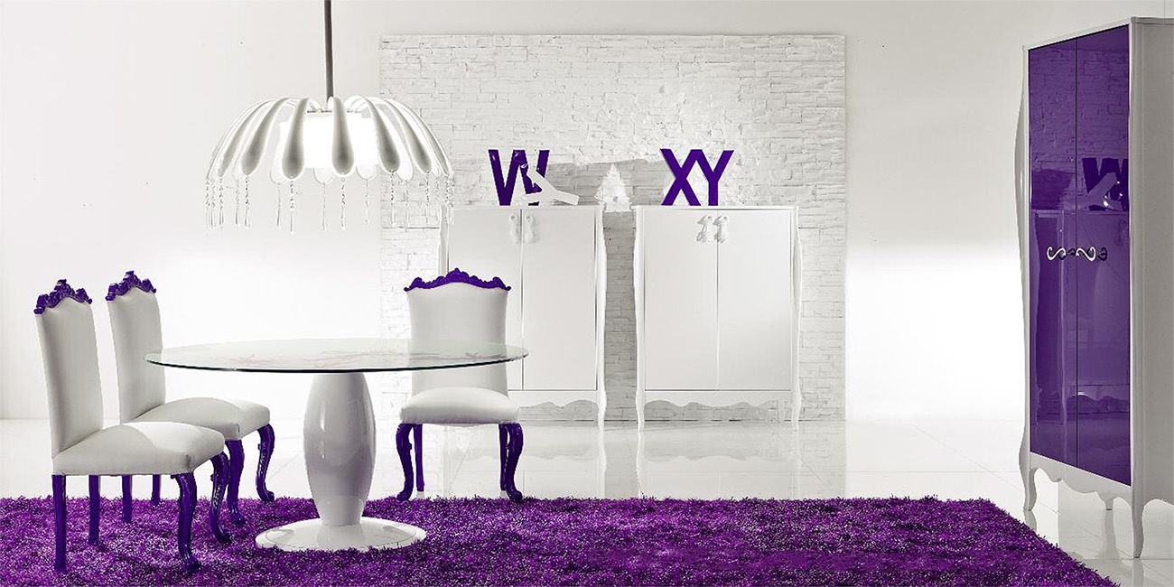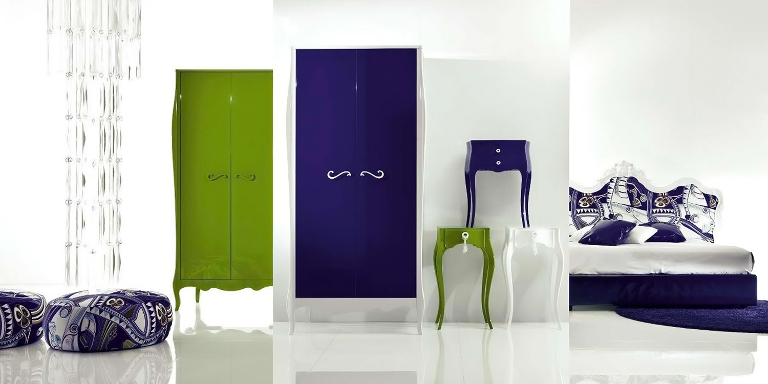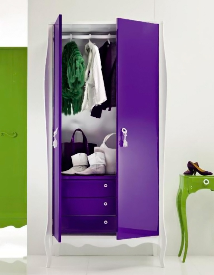 Wardrobe Sinfonia Do Diesis from the Italian manufacturer Moda. The body is made of solid wood. Fittings - brass.Finish - Matt or glossy varnish. Style - glamour. High legs decorative forms. Colors in stock, the models presented in purple, green and white colors.