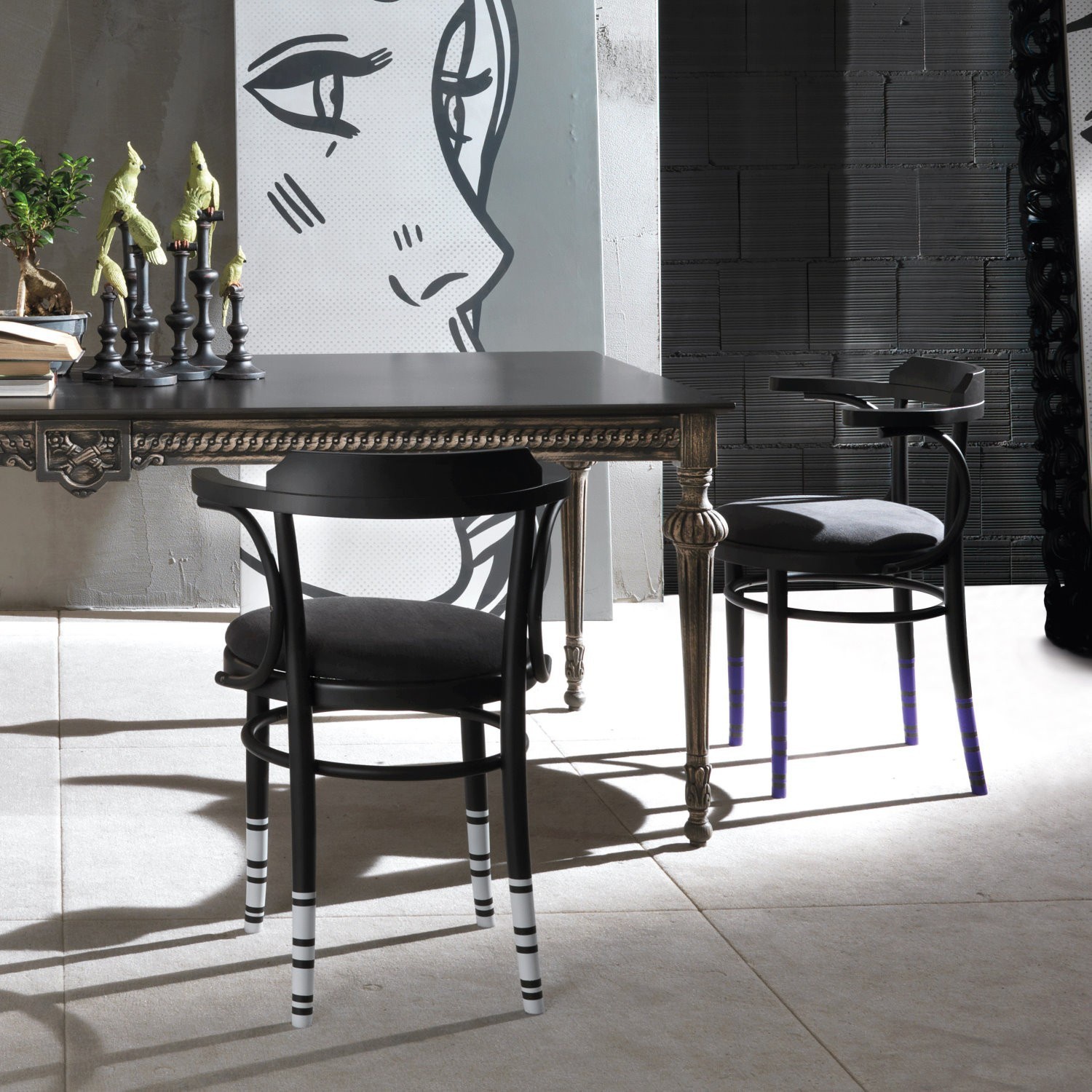 The Air chair from the Italian manufacturer Moda. The model with the frame made of rattan. Seat cover - fabric or leather from a range of campaigns. The product with or without armrests is designed for terraces or summer furniture. Color of the product by the number of items presented model is decorated with bright colored lines on the legs in the style of glamour.