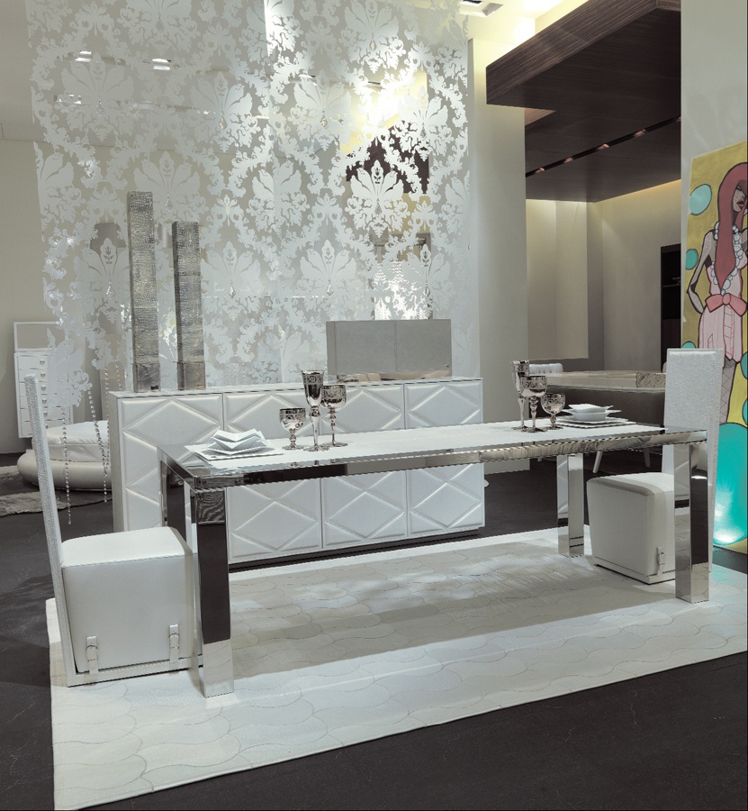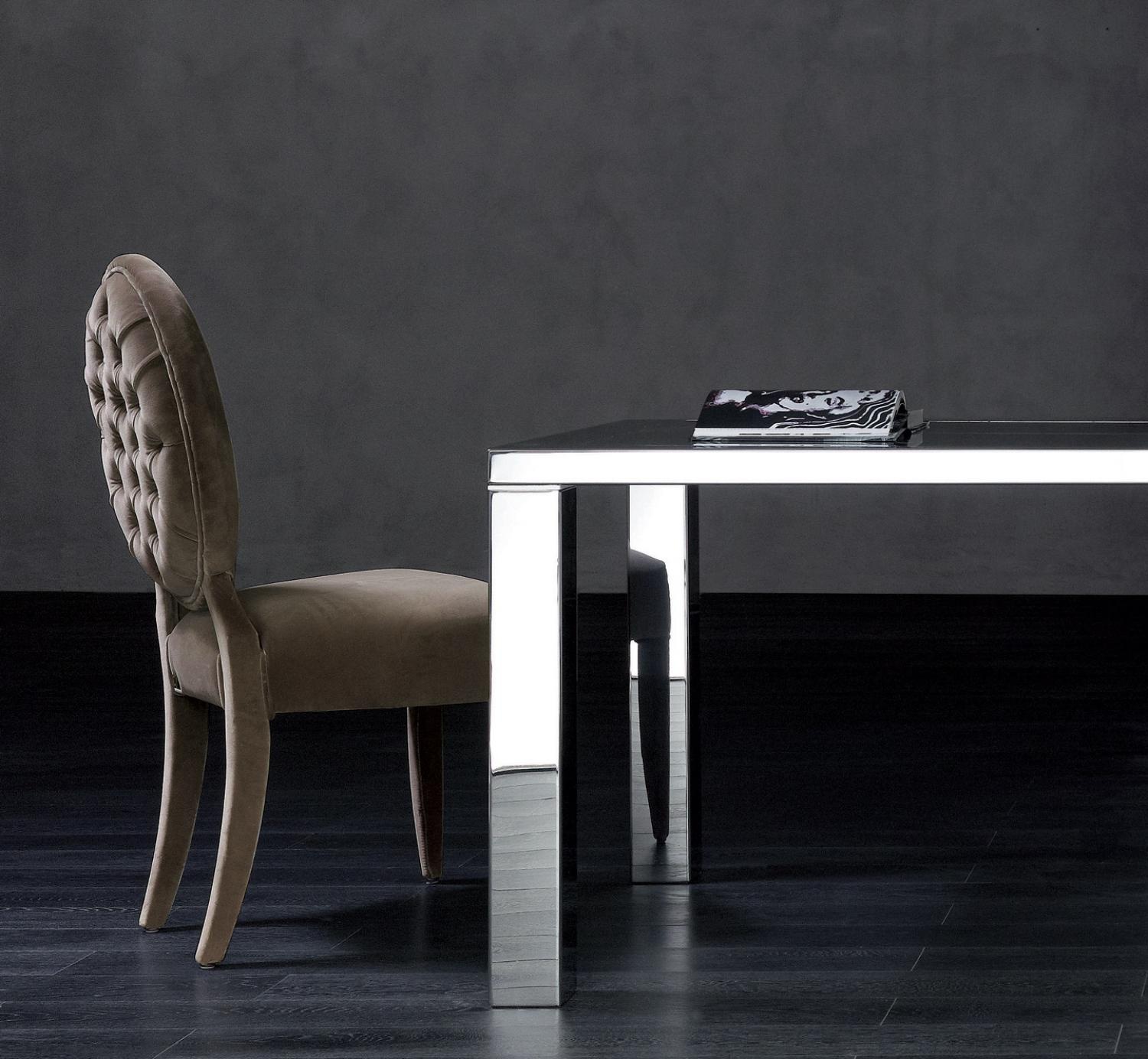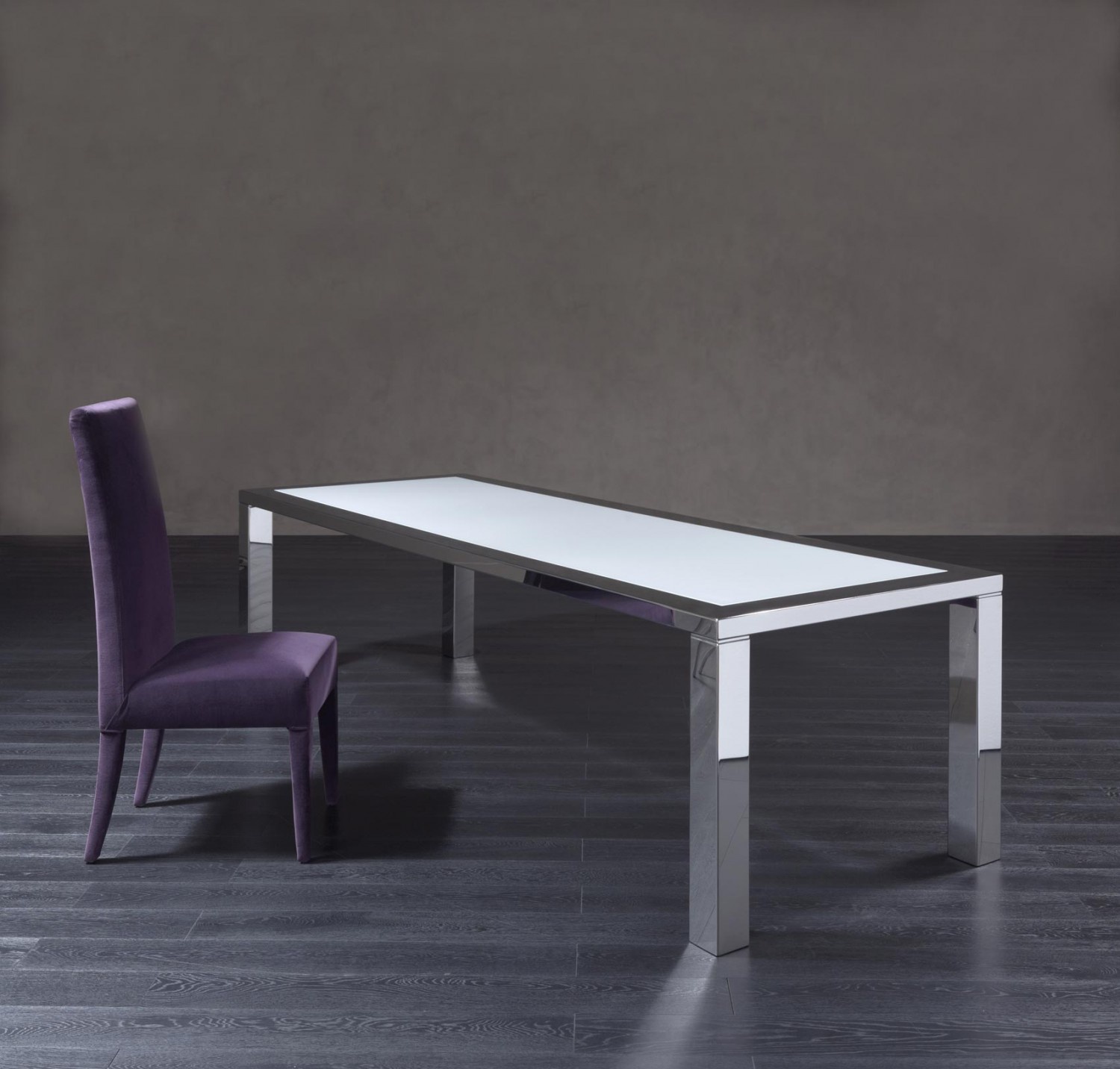 Narciso dining table from Italian manufacturer Rugiano. The table is available in two versions: entirely in chrome steel or with a leather inset on top. The thickness of the table top 5 see a Great option for Your living room or dining room in contemporary style with hints of glamour.