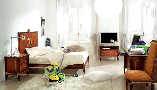 Set for children's Bye from the Italian manufacturer Allievi. Set includes: bed, Desk, dresser and chair with high back. Materials: natural wood, and textiles. The tree is decorated with hand-carved finish lacquer. The furniture in classic style. Colours in stock.