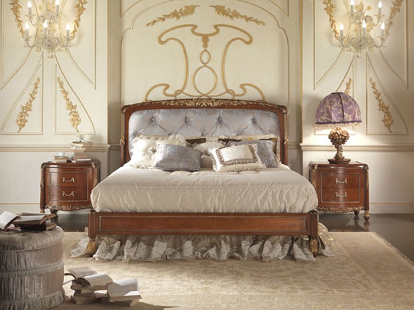 Set for bedroom Selene from the Italian manufacturer Allievi. Set includes: double bed, two bedside tables and a chest of drawers. Materials: solid wood. Upholstery - textiles. The tree is decorated with hand-carved finish lacquer. The furniture in classic style. Colours in stock.