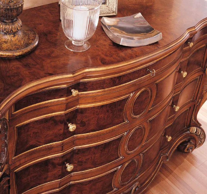 | Description: | Chest Aureola-2004/505 from the Italian manufacturer Fratelli Allievi. Carved chest of 4 drawers is made in the Baroque style. Material - natural wood. Carved top and frame with marquetry decoration, ruffled front, curved legs Cabriole. Carved side panels, 4 pull-out drawer in the center embellished with ovals, the top drawer for jewelry locked with a key. Finish - lacquer colors - natural wood. Trim the photo to 2.3. |