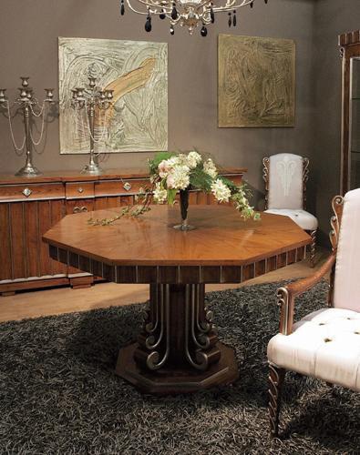 Set for the dining room Artgentea from the Italian manufacturer Allievi. Set includes: dining table and chairs. Legs, frame - natural wood. Upholstery - textiles. The tree is decorated with hand-carved finish lacquer. The furniture in classic style. Colours in stock.