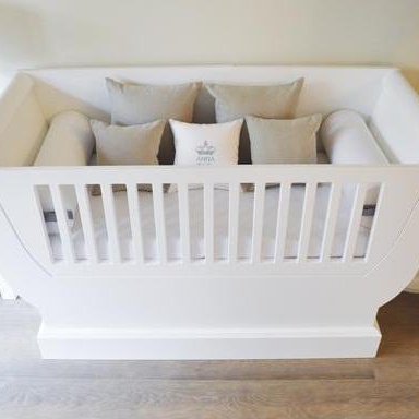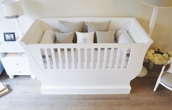 A crib from the Italian manufacturer Anna Baby Room. The model is made in classic style. The frame is made from solid wood. Offered lacquer finish in white. Front side removable. Distinguished elegance and practicality.