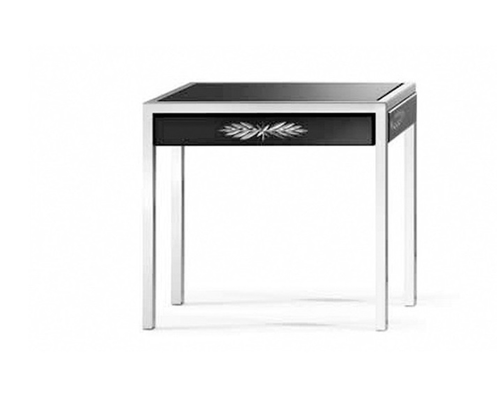 Table coffee Italian manufacturer Arte Veneziano. Model for small feet square. Model in black color with silver painted decoration. Made a table in the art Deco style.