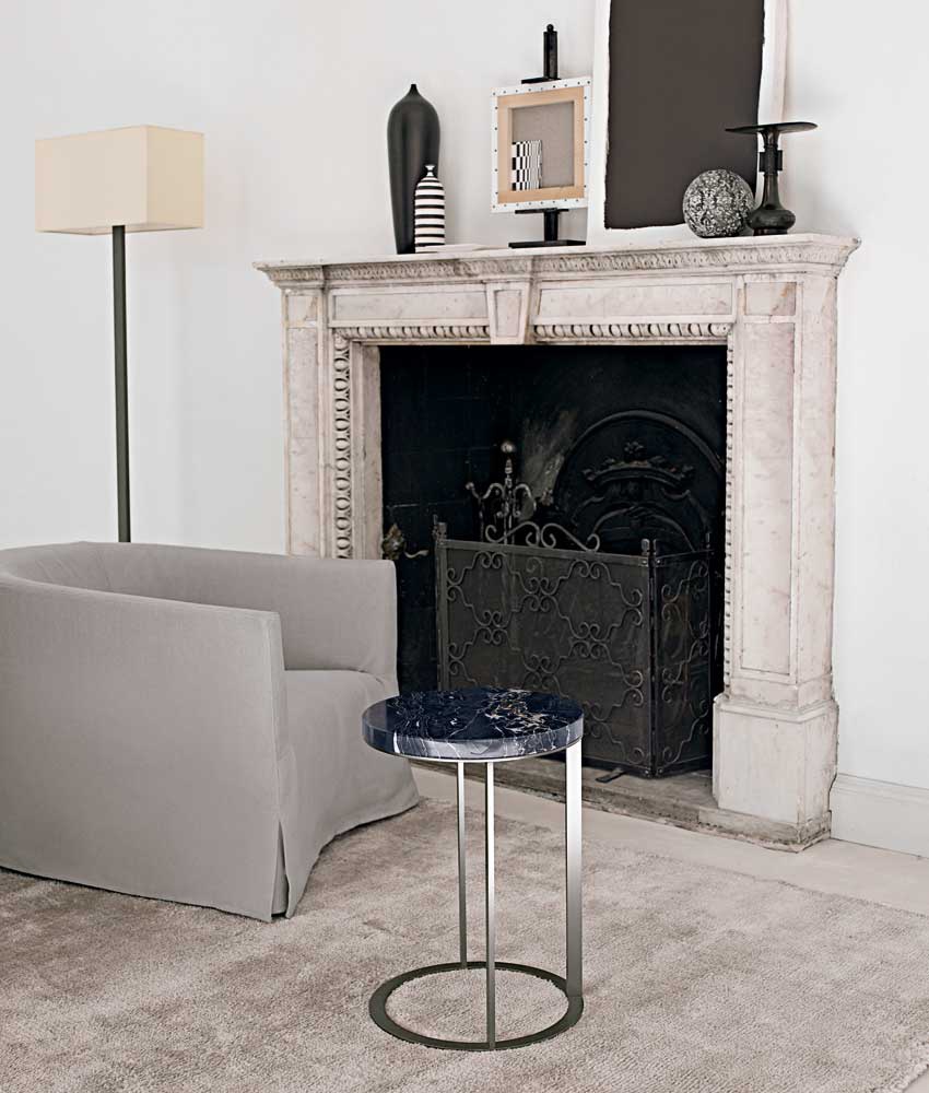 Lithos coffee table from the Italian manufacturer Maxalto. The model is made in a modern style. Available in two versions with a round or square tabletop. The legs are metal. Top made of solid wood. Option finishes in the catalog of the company.