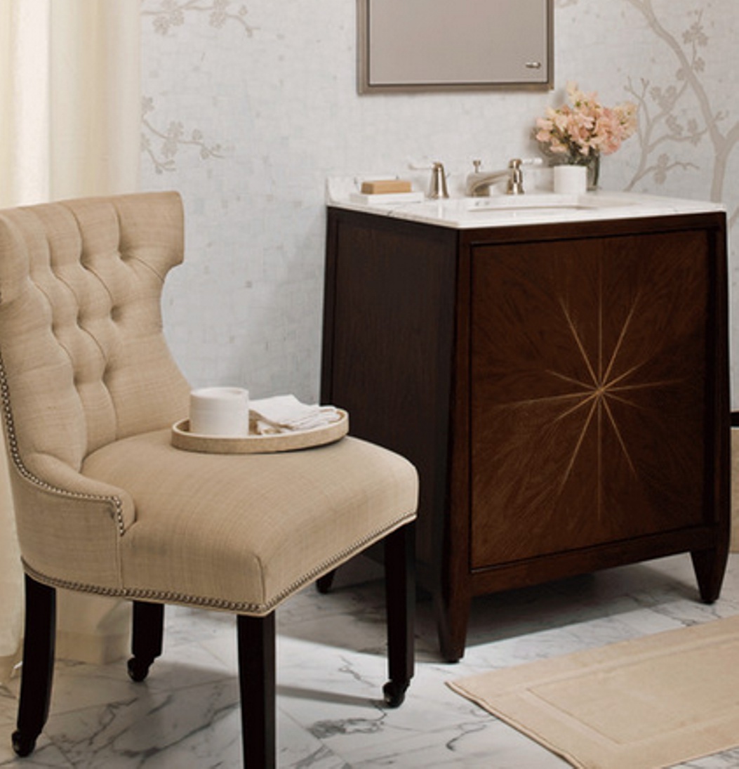 Chair American manufacturer of Barbara Barry. Model of a wooden frame on wheels. High back with curved edges. The padding is thick textile beige. Characterized by modern design and comfort. Color to be selected from the manufacturer's catalogue.