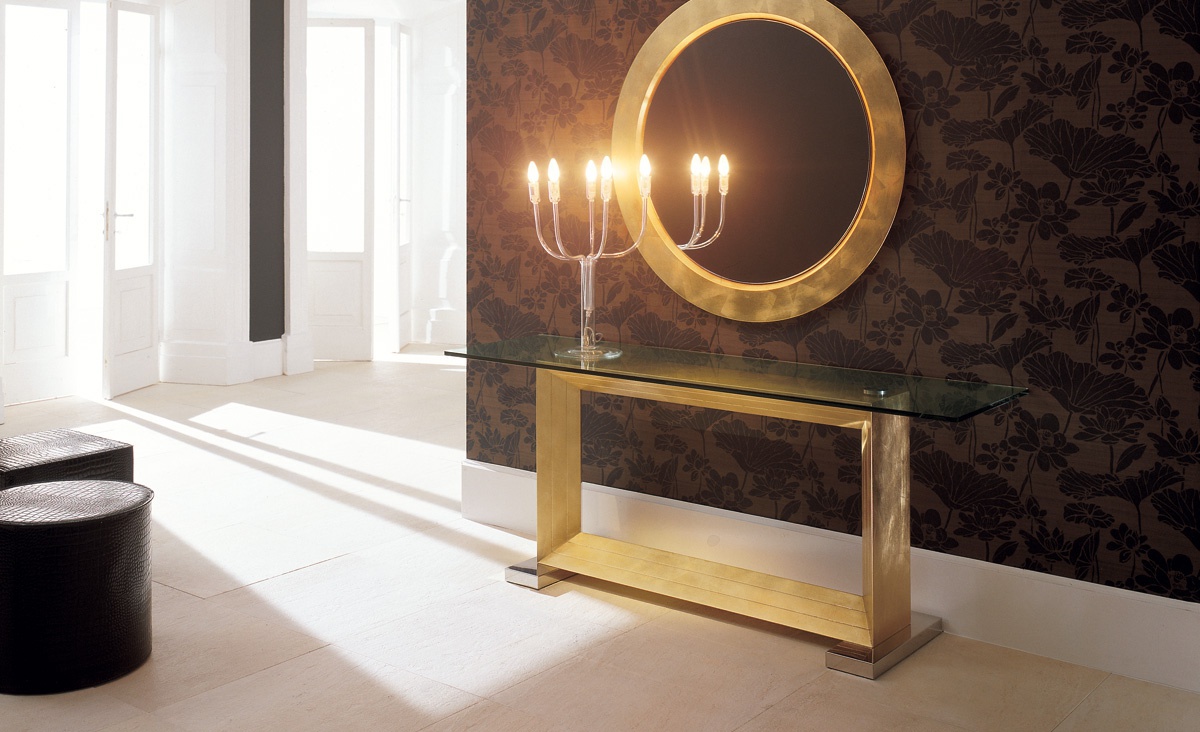 The console Monaco from Italian manufacturer Cattelan Italia. Legs in wenge, walnut, can be coated with gold or silver leaf, white Carrara marble or stainless steel. Table top is natural wenge wood or walnut/ transparent glass thickness 12 mm. the Model is made in modern style. Colours in stock.