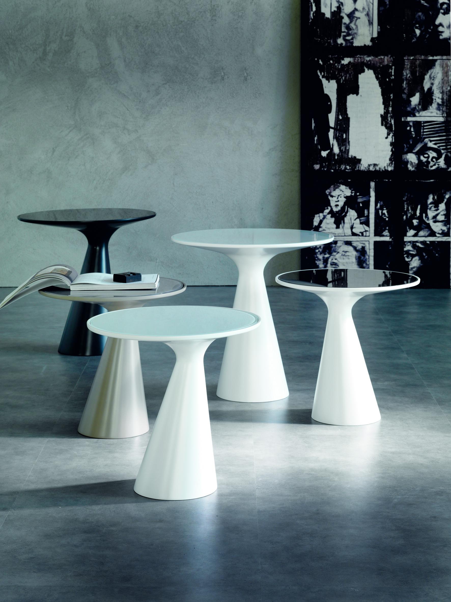 Coffee table from Italian manufacturer Cattelan Italia. The base is made of painted polyurethane. Stoleshnicy from bent clearly evident and transparent glass 5 mm. colors: white, gray and graphite. The model is made in modern style.