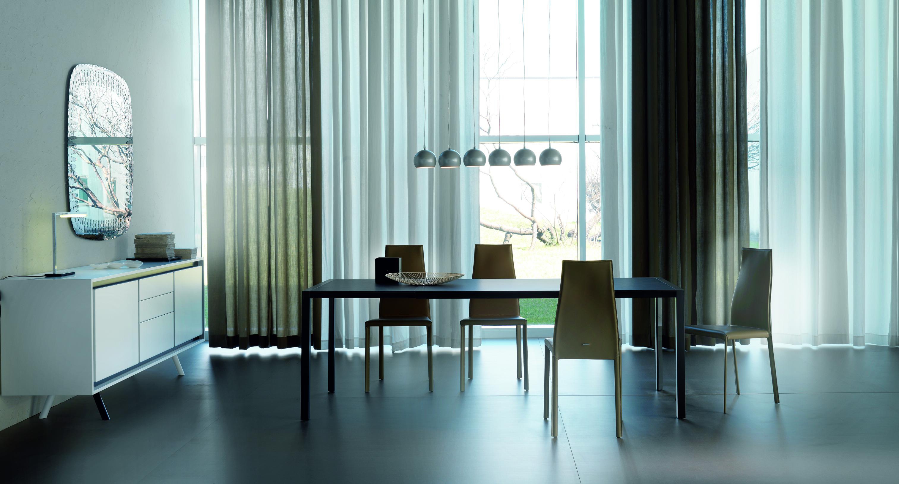 Dining table Pedro Drive from the Italian manufacturer Cattelan Italia. The frame is made of metal. Table top and extensions are made from wood with a laminate finish. The model is made in modern style. Colours in stock.