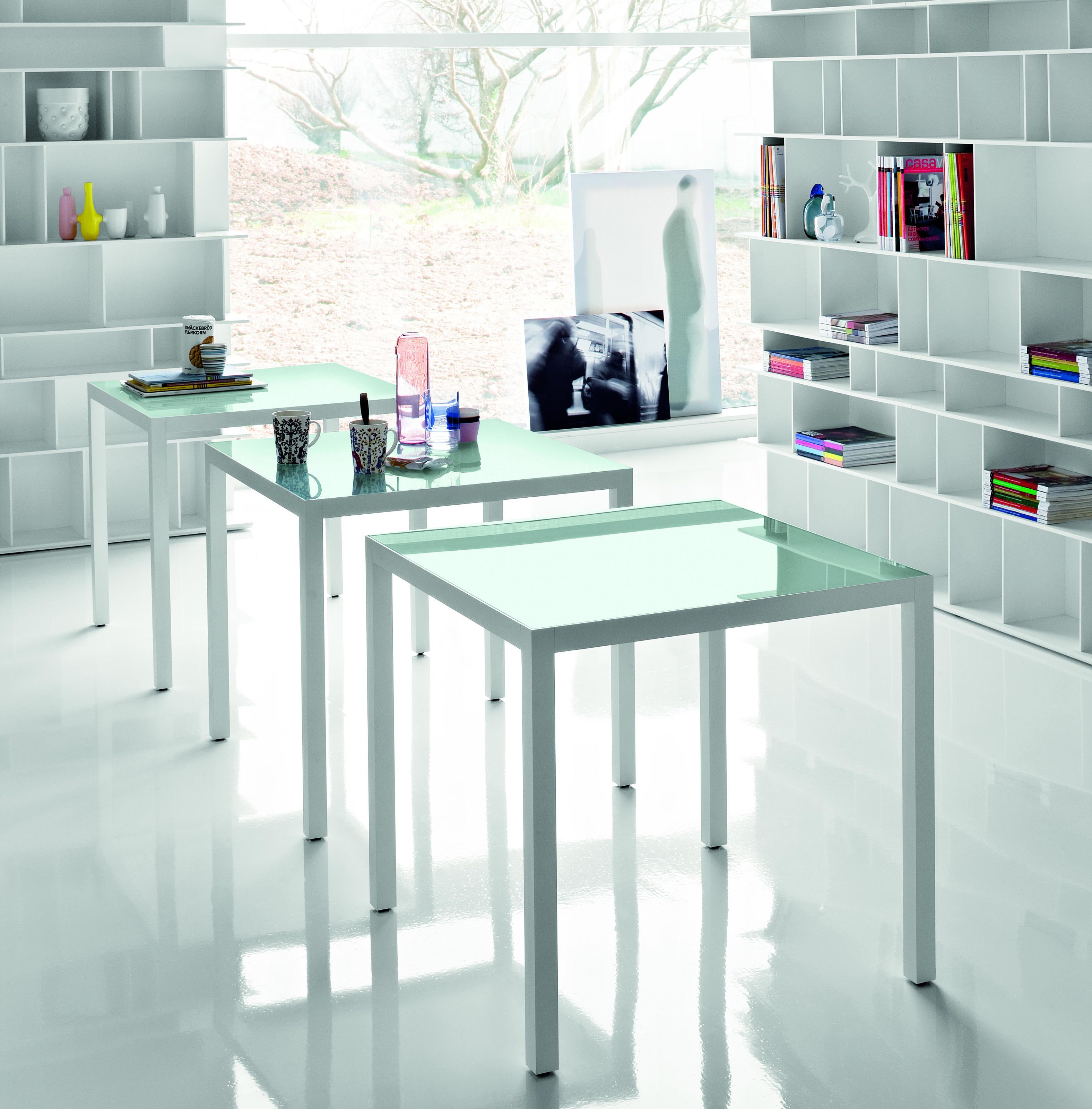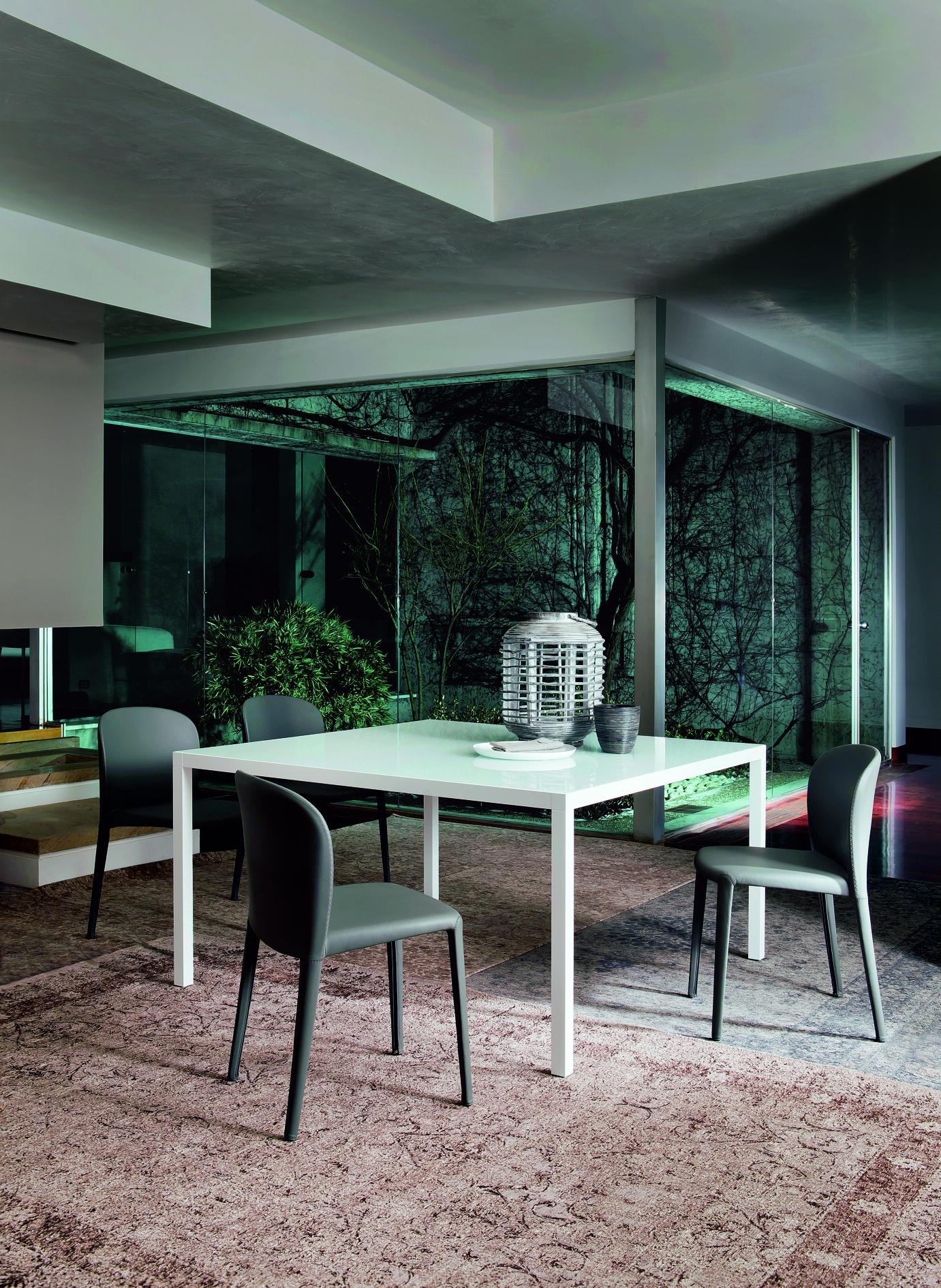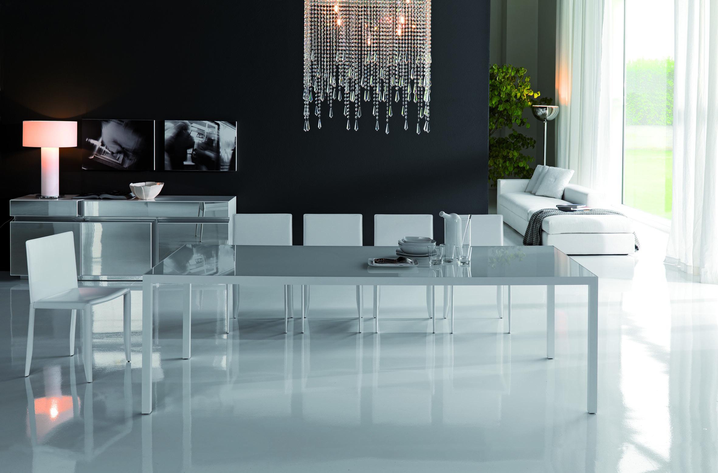 Tech dining table from Italian manufacturer Cattelan Italia. Legs - metal aluminum. Worktop - laminate or glass. The model is made in modern style. Colours in stock.