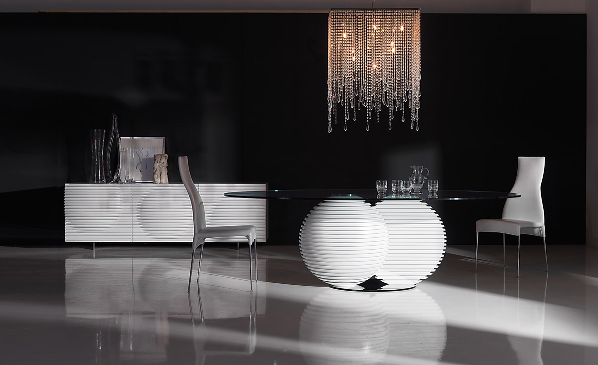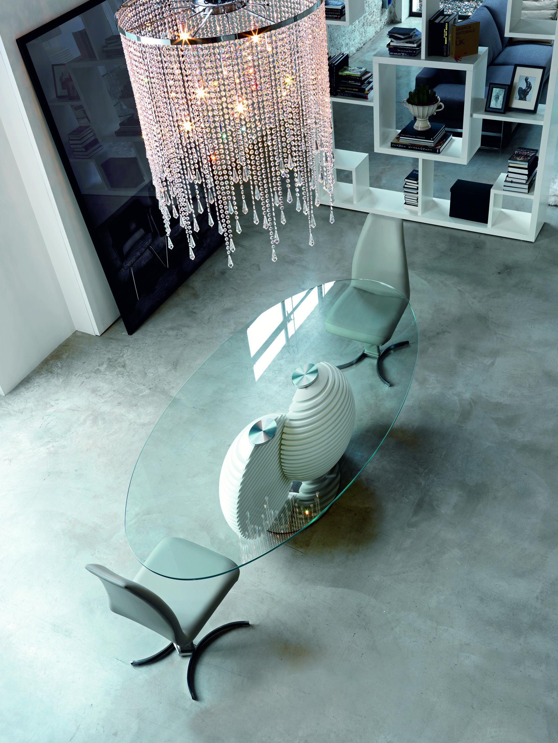 World dining table from Italian manufacturer Cattelan Italia. Table with base painted Matt white artificial marble and glossy stainless steel. The tabletop is made of transparent, or clearly evident and transparent glass 15 mm. the Model is made in modern style. Colours in stock.