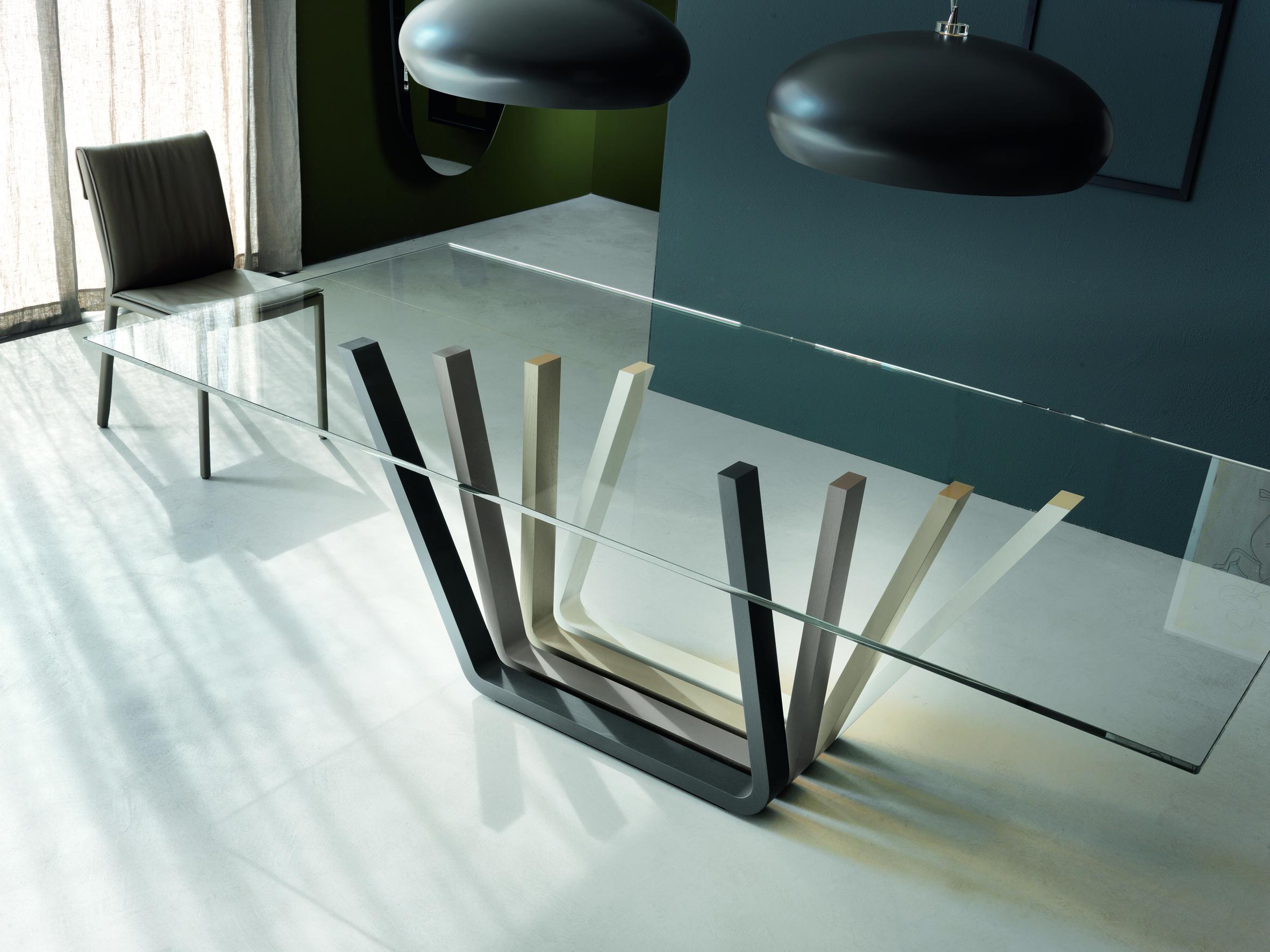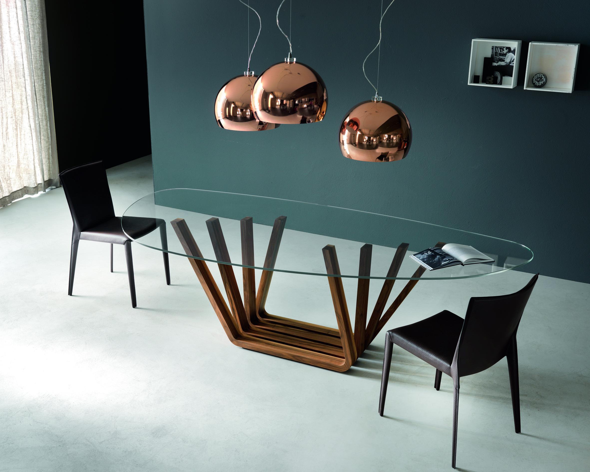 Domino dining table from Italian manufacturer Cattelan Italia. Legs - natural wood. Worktop - glass. Model rectangular or oval shape made in a modern style. Colours in stock.