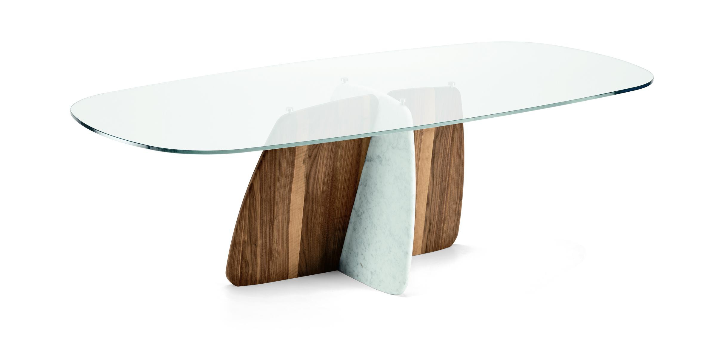 Glenn dining table from Italian manufacturer Cattelan Italia. The base is natural wood Italian walnut and marble Bianco Carrara. Table top - transparent glass, thickness 15 mm. the Model is made in modern style. Colours in stock.