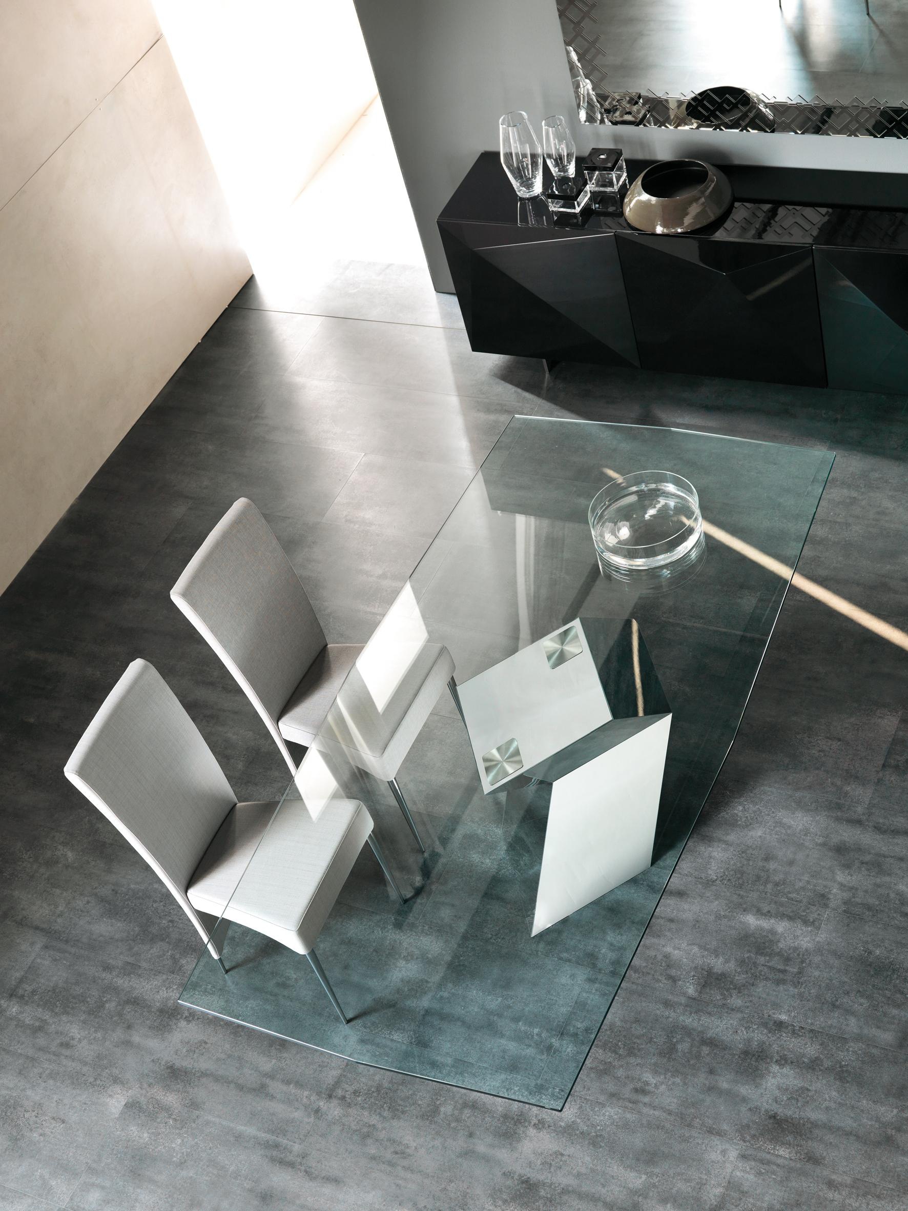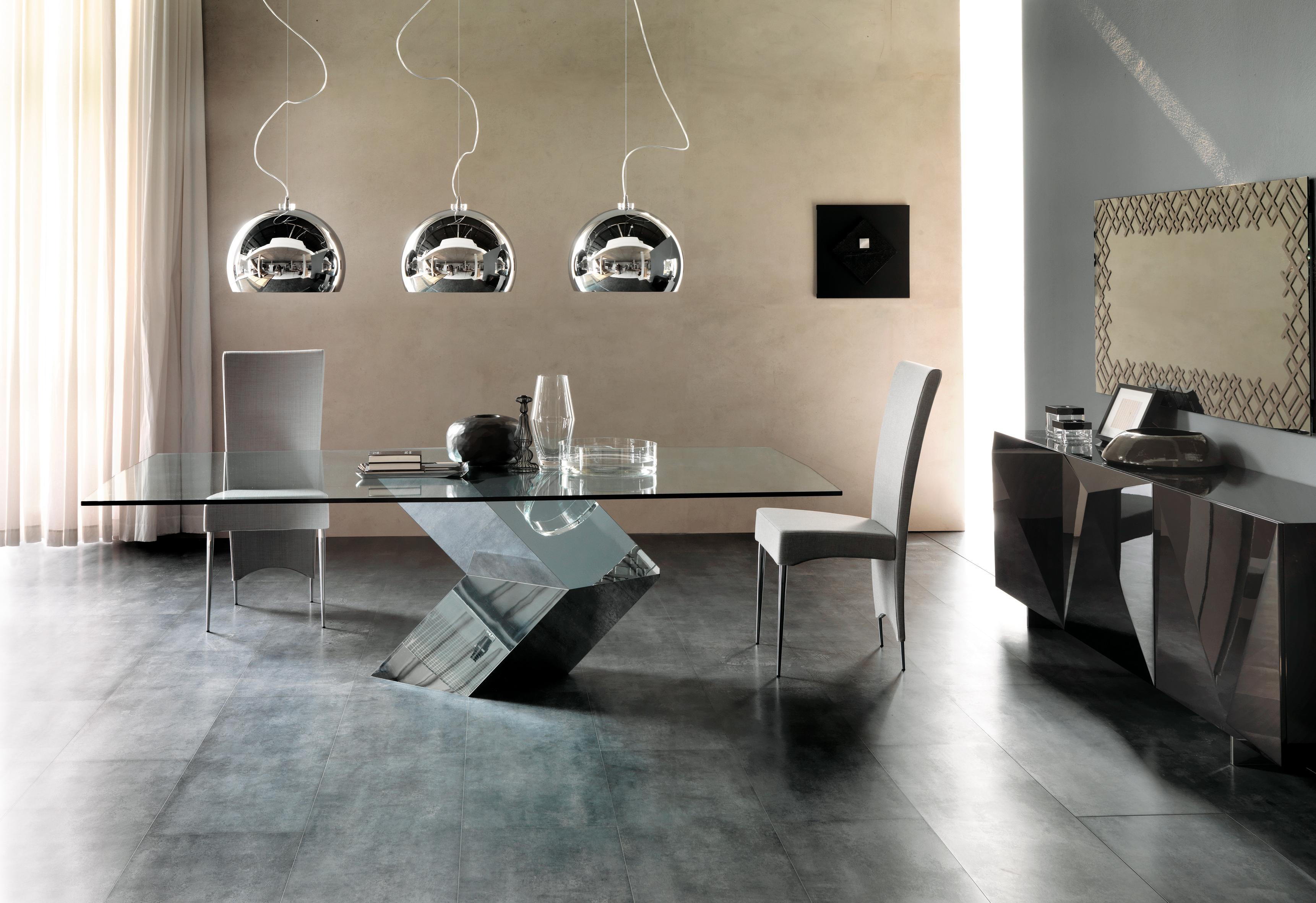 Hyatt dining table from Italian manufacturer Cattelan Italia. Table with stainless steel base. Tabletop in tempered clear glass 15 mm. minor irregularities in the reflecting surface and the base manual processing. The model is made in modern style. Colours in stock.