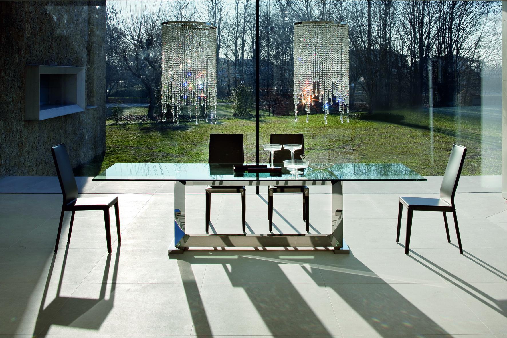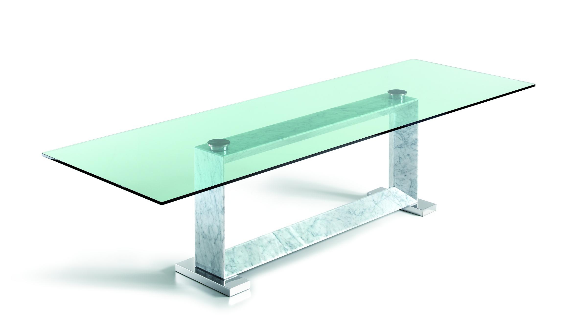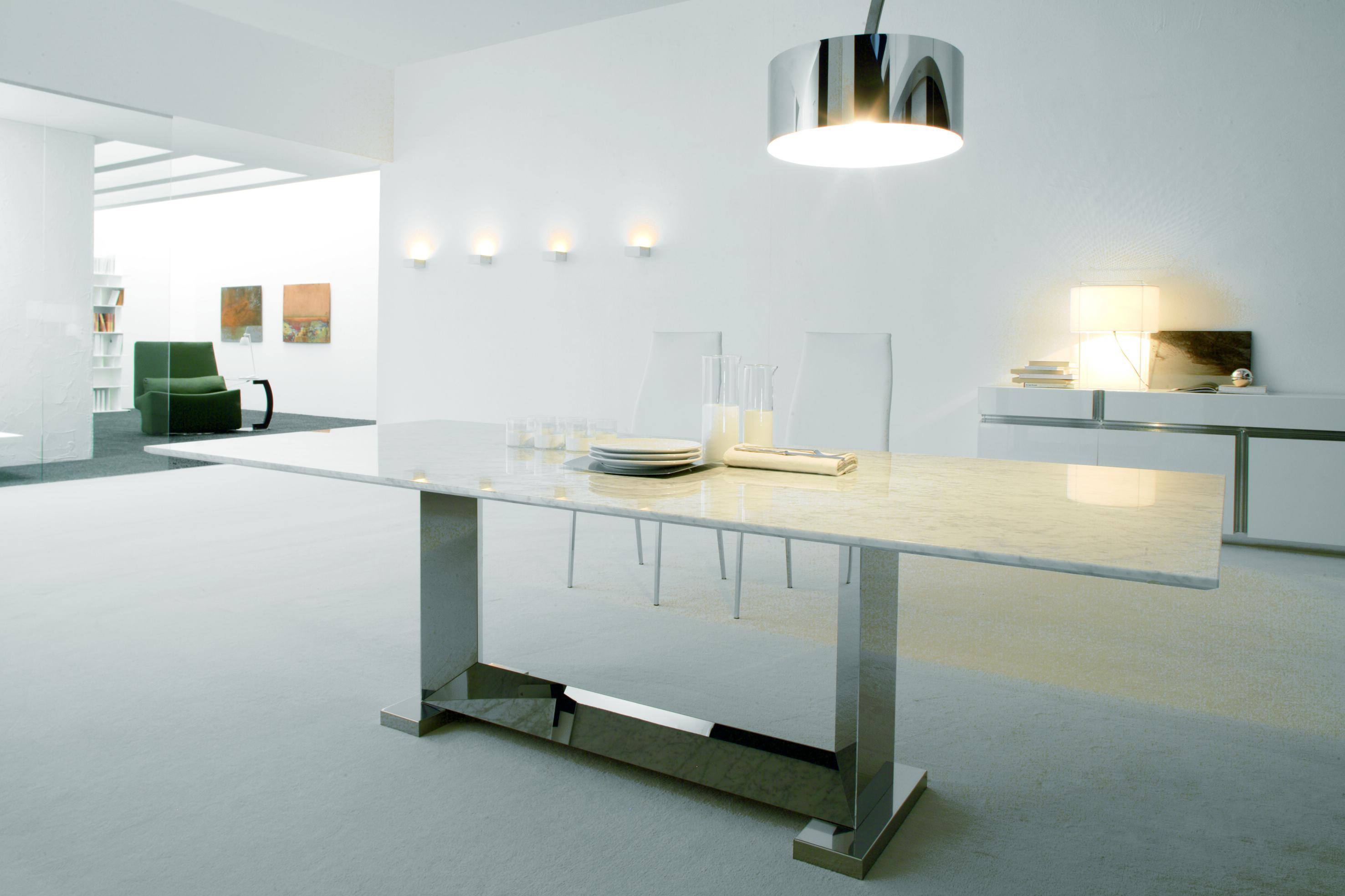 Monaco dining table from the Italian manufacturer Cattelan Italia. Table with base made of steel, wood or white Carrara marble. The legs from glossy stainless steel. Worktop - tempered glass 15 mm, walnut Canaletto, wenge, white Carrara marble. The model is made in modern style. Colours in stock.