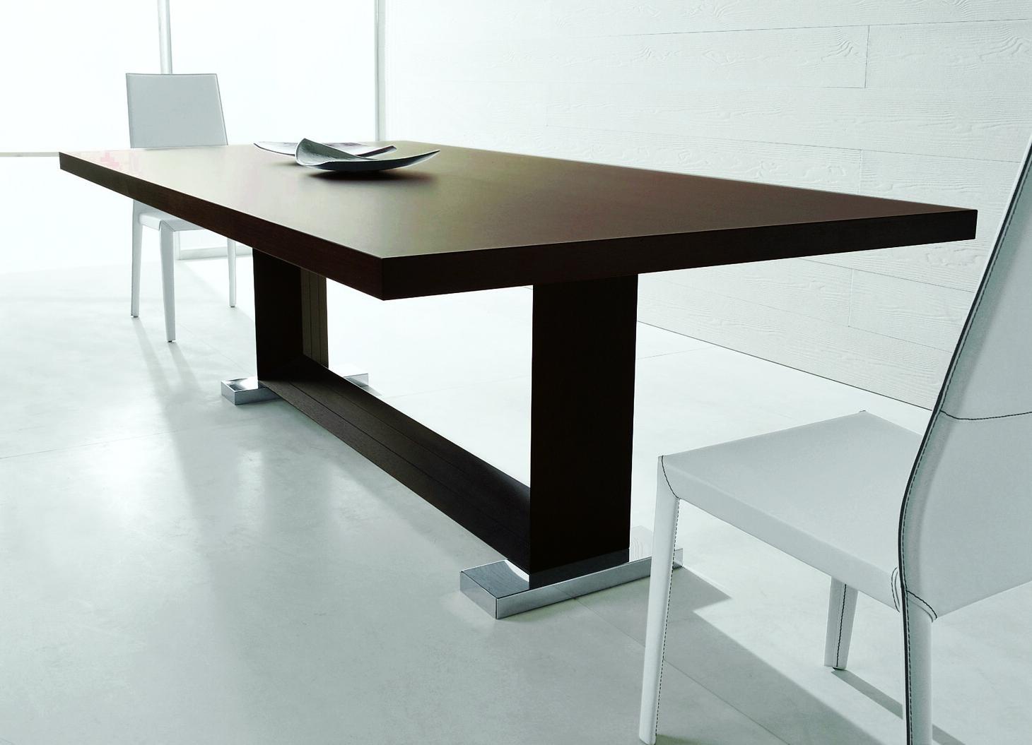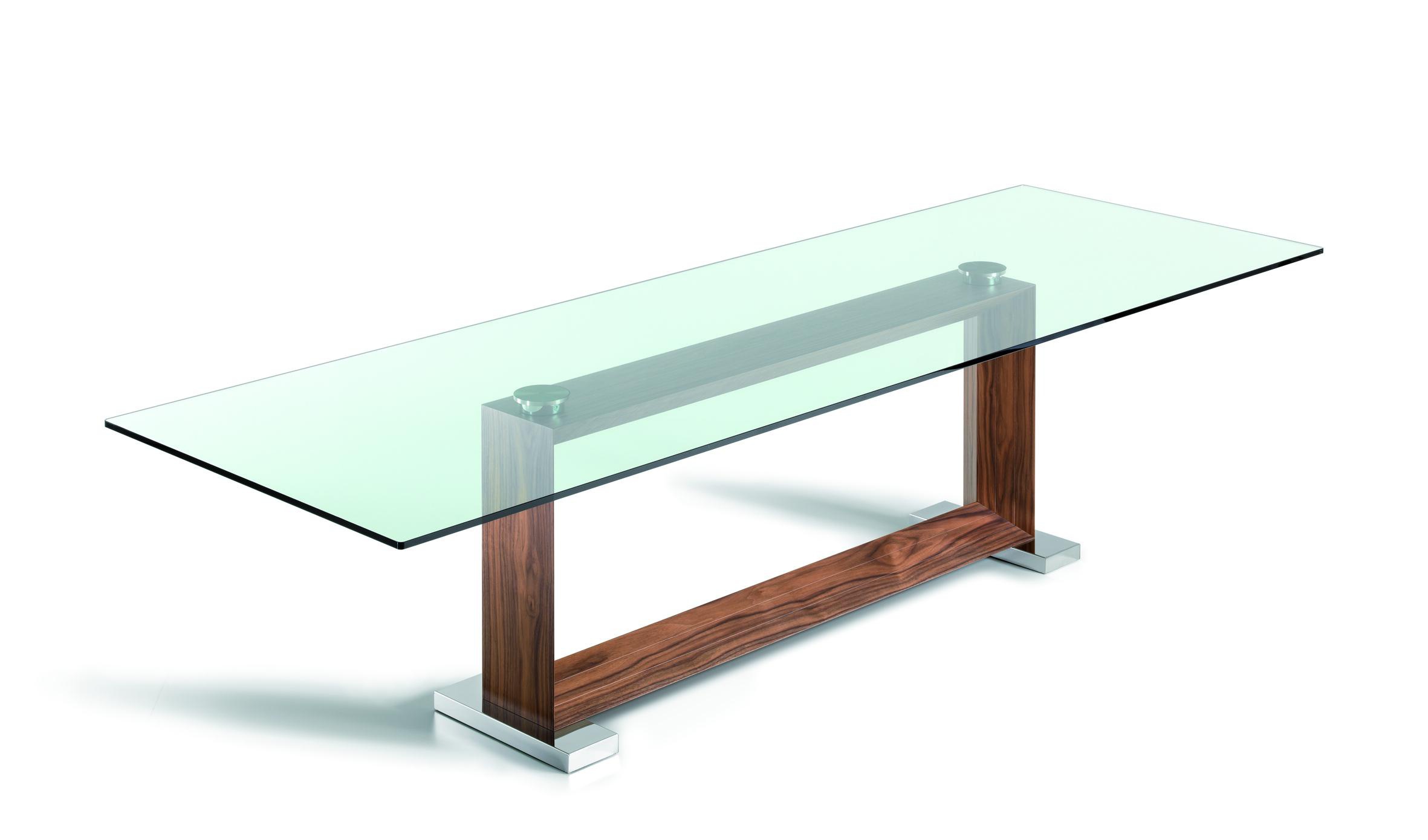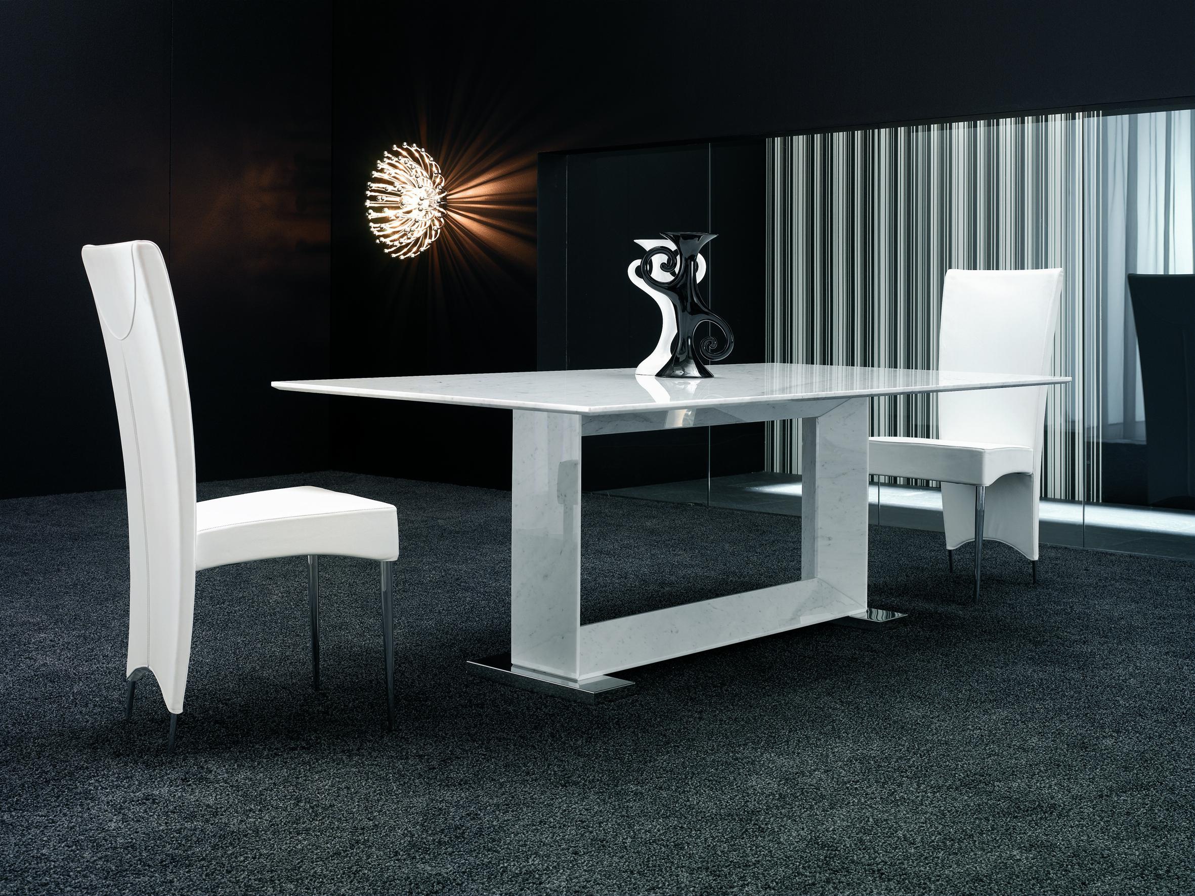 Monaco dining table from the Italian manufacturer Cattelan Italia. Table with base made of steel, wood or white Carrara marble. The legs from glossy stainless steel. Worktop - tempered glass 15 mm, walnut Canaletto, wenge, white Carrara marble. The model is made in modern style. Colours in stock.