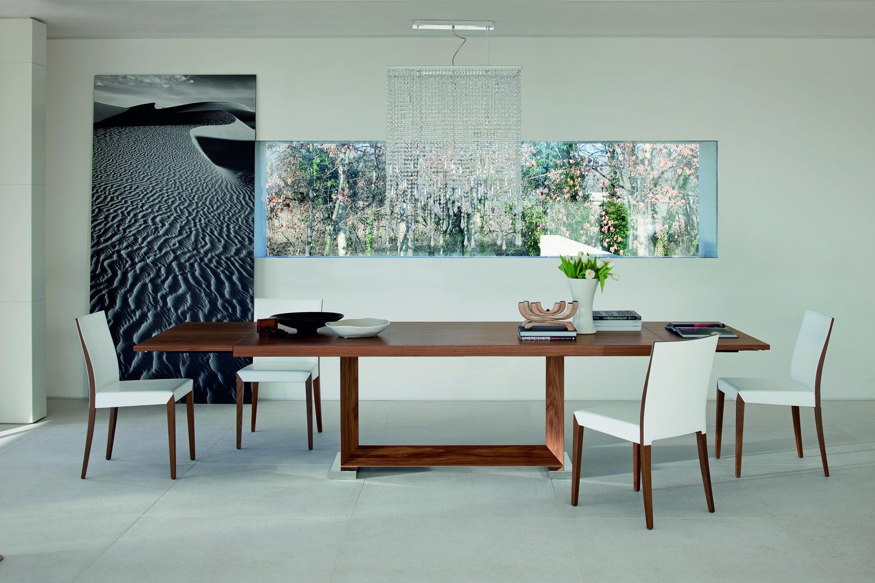 Dining table Monaco Drive from the Italian manufacturer Cattelan Italia. Extendable table with top and sliding parts made of walnut Canaletto or wenge. The legs from glossy stainless steel. The model is made in modern style. Colours in stock.
