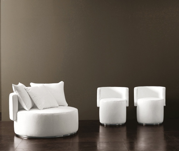 The Love Seat Big chair from the Italian manufacturer Rugiano. Model with comfortable backrest, without armrests. The frame is made of wood with a filling of polyurethane foam. Base finish Nickel or bronze. Upholstery of textile or leather. For your convenience, the factory offers several sizes. Colors in the catalog of the company. A great addition to your interior.