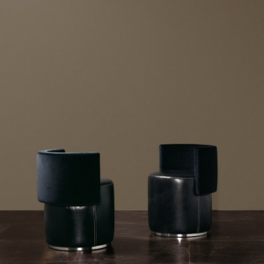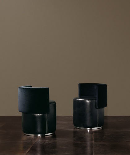 Round chair Love Seat from the Italian manufacturer Rugiano. Model with comfortable backrest, without armrests. The frame is made of wood with a filling of polyurethane foam. Base finish Nickel or bronze. Upholstery of textile or leather. Colors in the catalog of the company. A great addition to your interior.