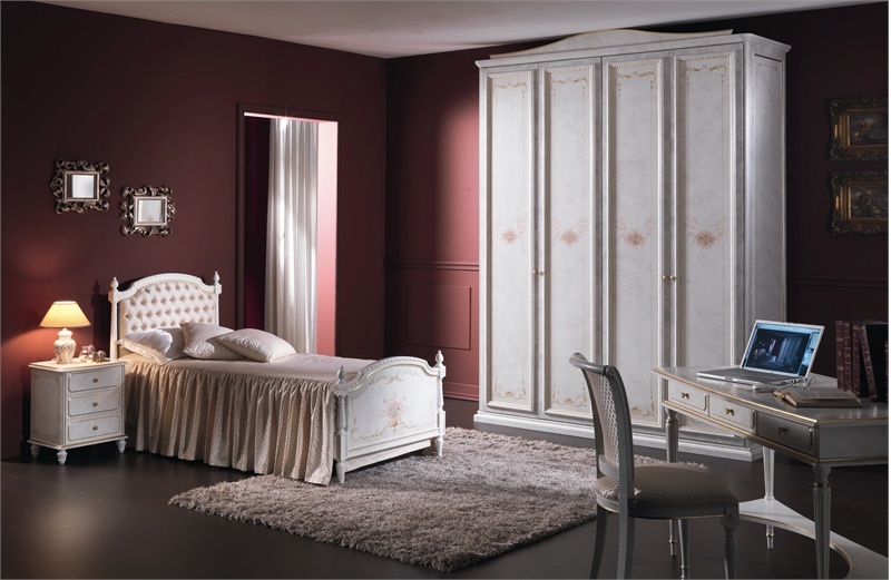 Bed Alesia from the Italian manufacturer Pellegattа. The hand-crafted bed. The headboard in the soft upholstery with decorative stitch. The frame is made from tamburino, plate material with honeycomb on the basis of solid spruce. The legs and support bars of the headboard and foot end made from solid wood, ramino, decorated with carvings. Finishing is done manually with the possibility of staining can choose any color from the range or by a given sample. The model can be decorated with hand painting, a picture from a catalog of factory or according to customer. The surface is covered with a substance, which protects it from scratches and damages.