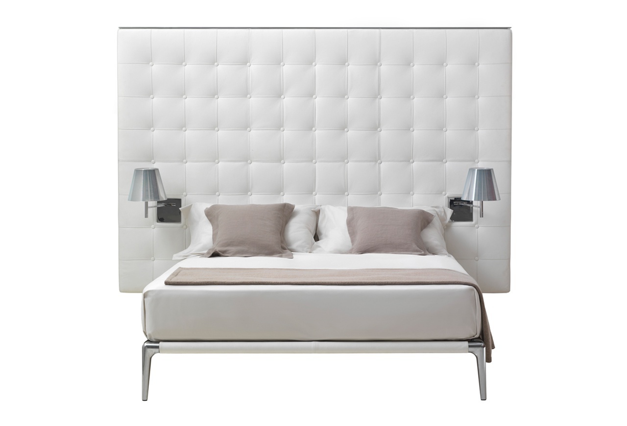 Volage bed, from the Italian manufacturer Cassina. Designer - Philippe Starck. The frame is made of wood and metal. The model has high and soft headboard with stitch Capito. Upholstery - leather or textiles from a range of companies. The style is modern.