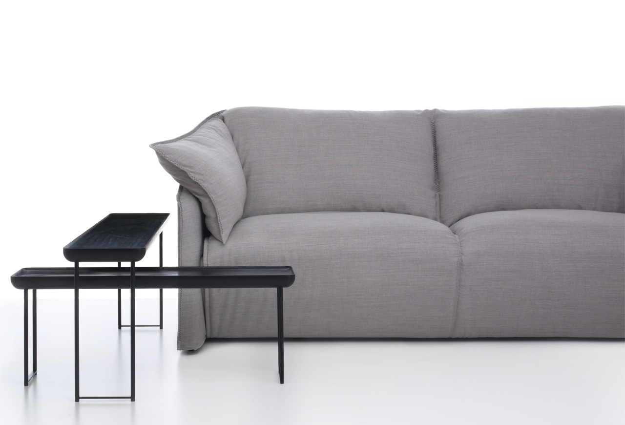 The sofa La Mise, from the Italian manufacturer Cassina. The frame is made of metal. Upholstered in soft textiles from the assortment of the company. The backrest becomes the armrest, which rested in a solid frame. The style is modern.