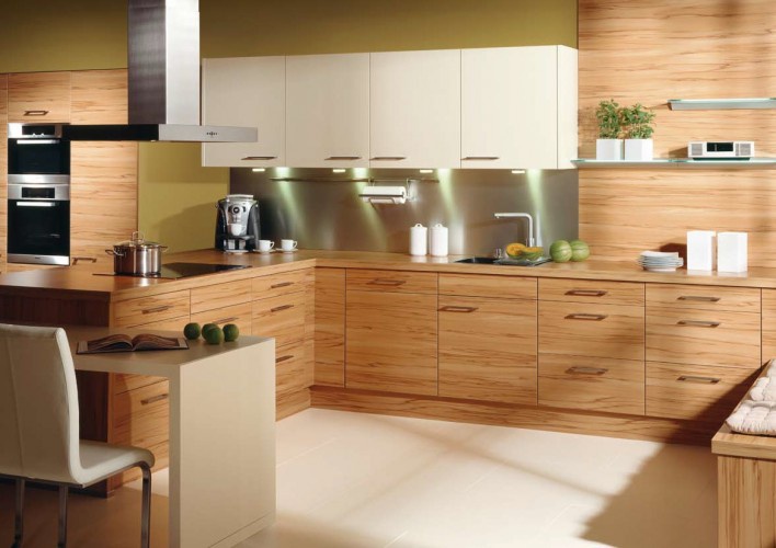 Kitchen Edda/Lisa (cream-colored beech) from the German manufacturer Sachsenkuchen. The frame is made of MDF with veneer facade modules with plastic coating acrolein. Fronts made of plastics are impact resistant, special care is not needed. Accessories metal. The boxes are equipped with system provide silent and smooth closing. Modern design will give the interior originality and sophistication.