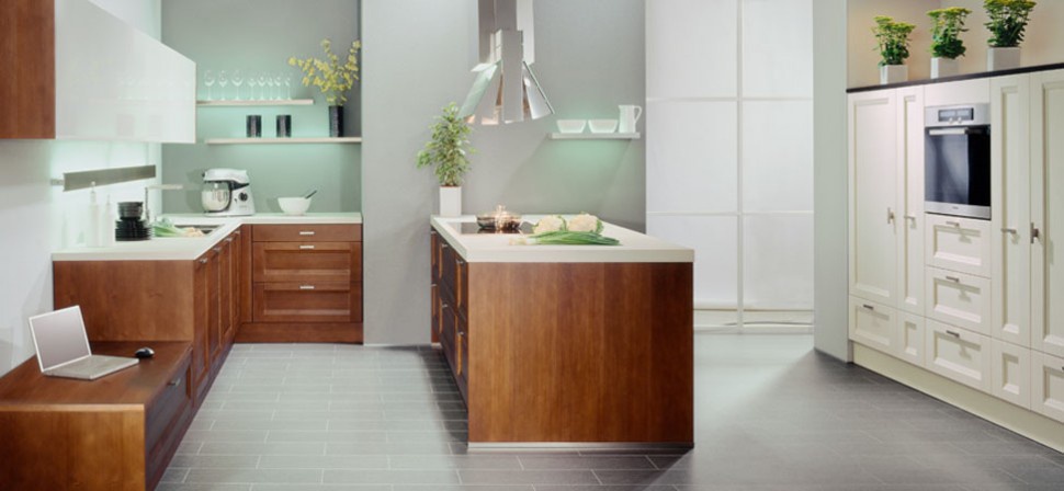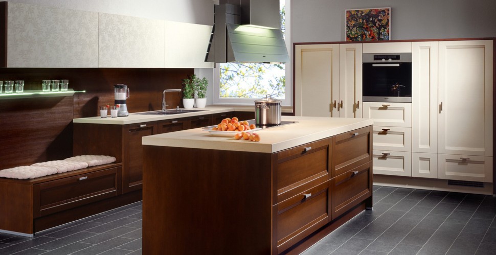 Kitchen MARIELLA Umbra from the German manufacturer Sachsenkuchen. The model is made out of wood. Glass doors with artistic accent. The boxes are equipped with system provide silent and smooth closing. The working surface can be covered with artificial stone or wood. Decorative metal fittings. The country style modern design skillfully transforms the tradition in the interior. Color in stock.