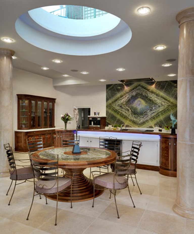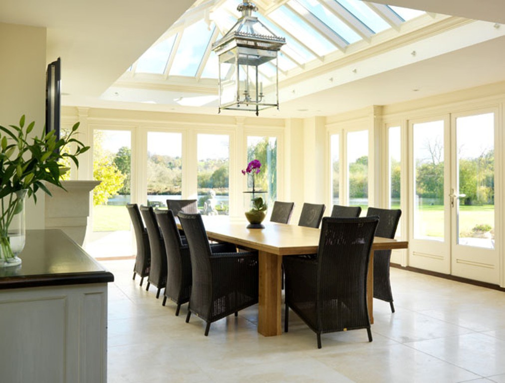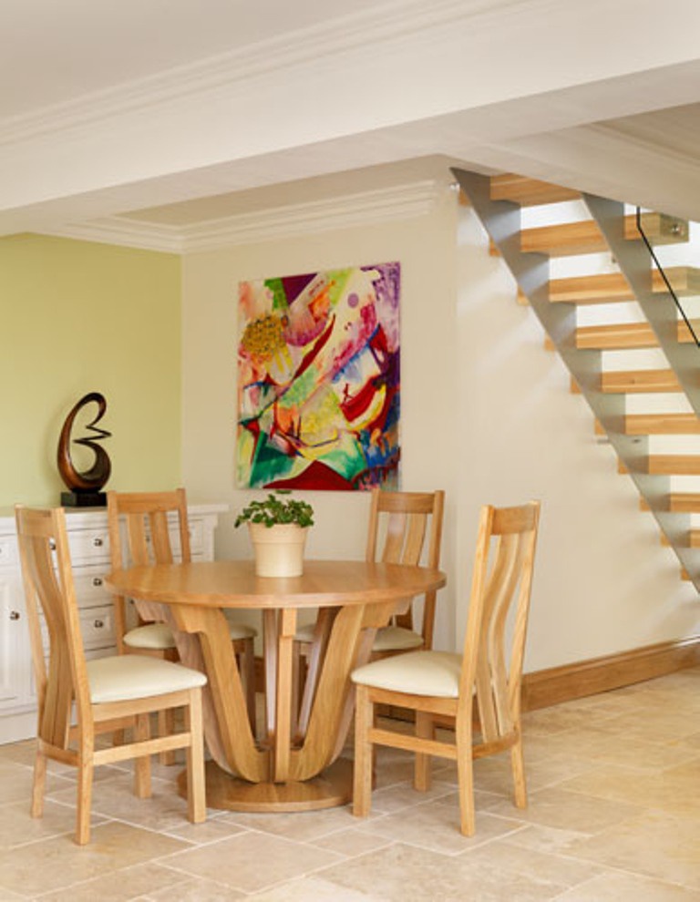 Dining room (dining set) from the English manufacturer Charles Yorke. Set includes: rectangular dining table, chairs with high back and armrests, the window and a snack bar. The frames are made of wood. Set is made in modern style.