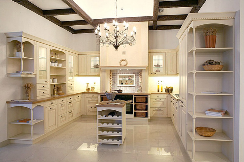 Nevada kitchen cabinets from German manufacturer Bauformat. Materials used are (variations) - varnish, veneer, solid, laminate, stone (all colours from the collection of the factory). The kitchen is designed in country style. The facades color of melted milk. Supplemented by modules for the storage of wine. A perfect choice for any room.