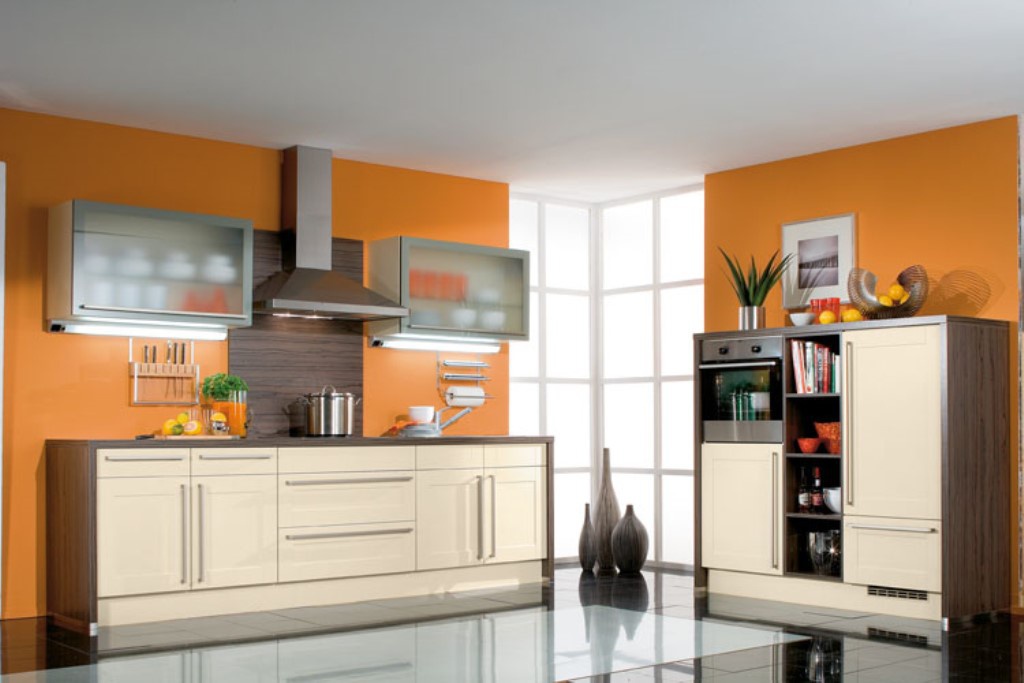Milano kitchen set 482 from the German manufacturer Bauformat. Used natural materials - solid wood, MDF. Preferably, the color palette of natural wood colors combined with white. Modern kitchen with facades color of vanilla. Line Milano presents a lighter facades "cameo". It helps to maintain the style in detail, and personality depends entirely on Your preferences in location, color, selection of accessories and furniture.