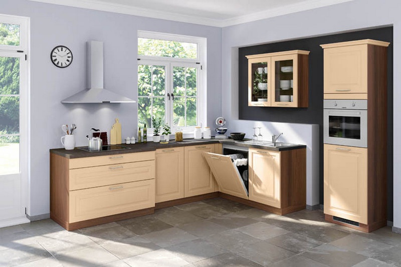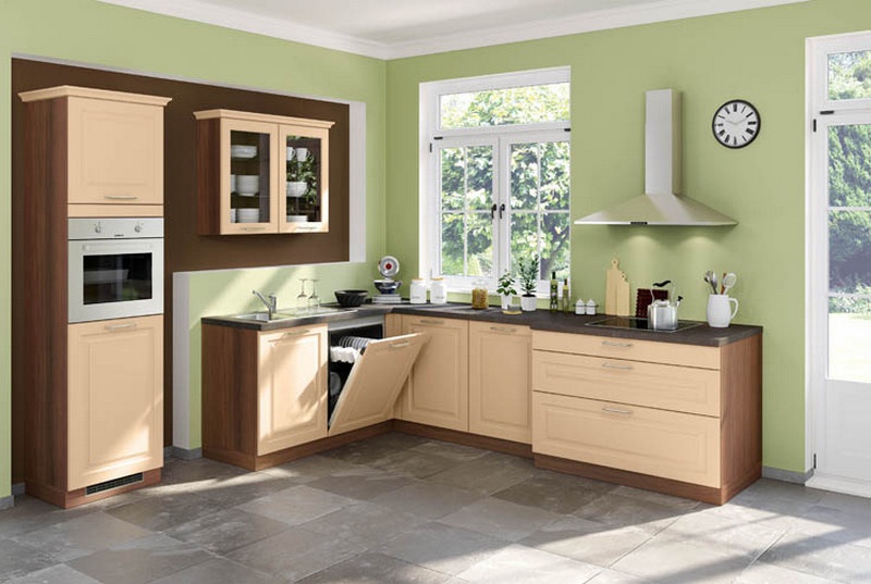Kitchen Sevilla 592 from the German manufacturer Bauformat. Used natural materials - solid wood. Luxury kitchen in a classic or country style made of natural materials in bright and warm colours of olive, dairy and brown shades. A perfect choice for any type of premises.