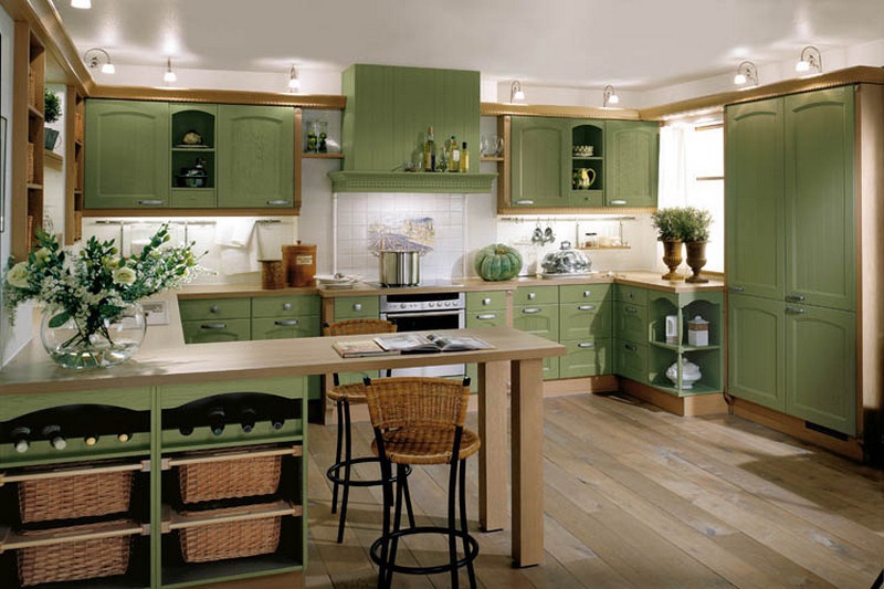 633 Valencia kitchen from the German manufacturer Bauformat. Body - MDF worktop - solid wood. Spectacular kitchen set in an olive color in the style of Provence. Used elements of weaving, veneer. A perfect choice for any room.