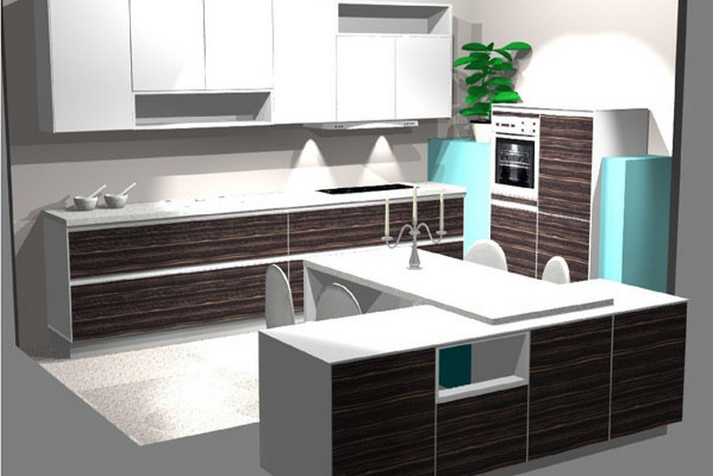 Kitchen 11 Kitchen from the German manufacturer Bauformat. The materials used - the wood veneer, MDF. Kitchen in a contemporary style with veneered fronts, original decorated dining area and a work top. To order individual equipment sets according to the customer.