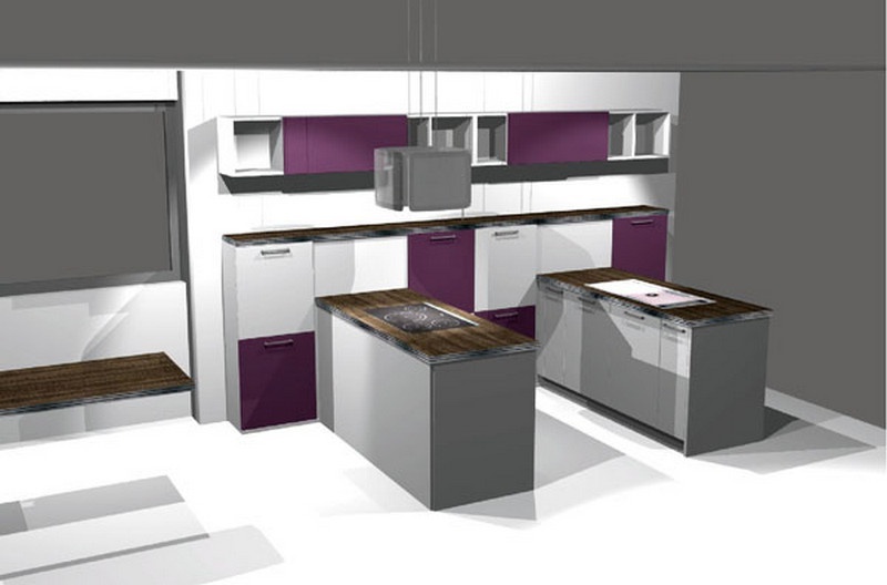 Kitchen 17 Kitchen from the German manufacturer Bauformat. Materials used - natural wood. The kitchen is designed in modern style. Super modern furniture with light purple, grey facades, as well as white cabinets for utensils and counter tops accentuate the stylish design rooms of any kind of plan.