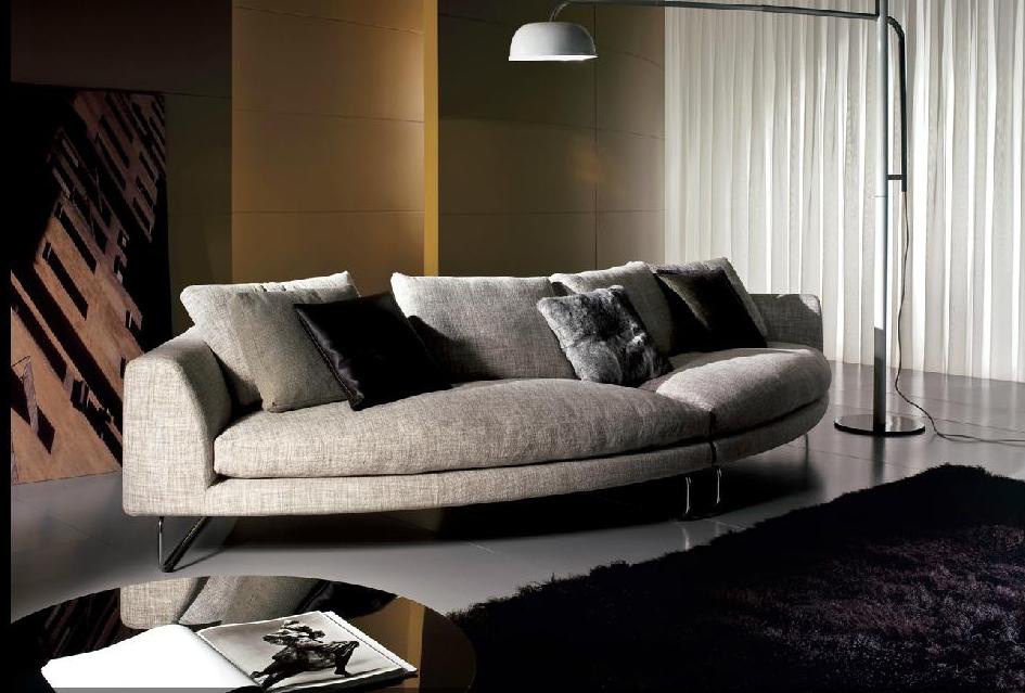Semi-circular sofa Add Look Round from the Italian manufacturer I4 Mariani. The model is made in modern style. The case is completely covered with textile. Stainless steel legs. The filler is made of non-deformable polyurethane foam. Decoration are removable decorative cushion.