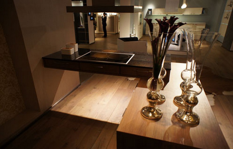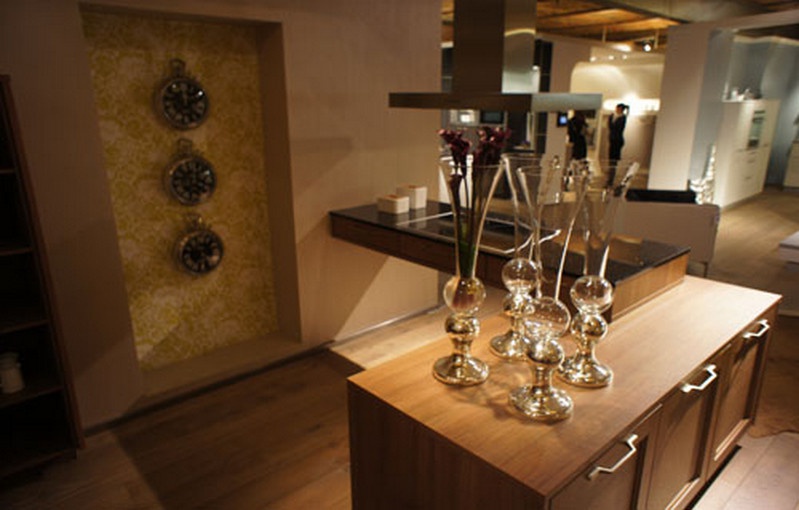 Kitchen set Madrid 459 of the German manufacturer Bauformat. The style is modern. Materials used: natural wood and glass table-top. Kitchen with fronts made of wood, included in the latest collection of Bauformat. The working surface is allocated in a separate zone and "enters" the wall, cabinets for utensils are located in several places: where they are used most often.