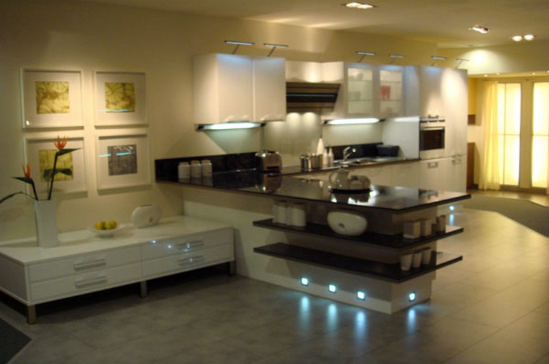 Kitchen Rhodos 314 from the German manufacturer Bauformat. Material wood, tinted glass. The style is modern. This the model - combined details - brown walnut and gloss white colors. Also concerned with speed location niches for utensils under the sink.