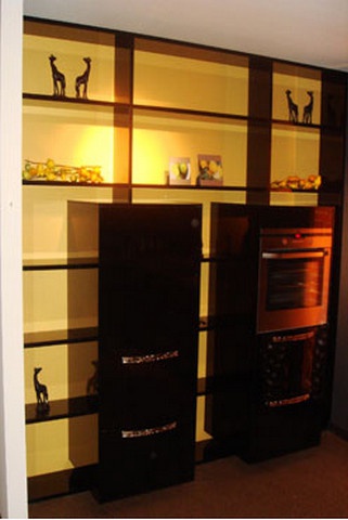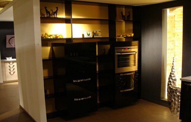 Montreal kitchen set 501 from the German manufacturer Bauformat. Materials used - solid wood, stone. Design style - modern. Strict black color with playful facades vyigrashno looks in the interior. The classic kitchen corner location, separate appliances, an abundance of multi-tier shelves for storage and a contrasting silver fittings, polished Nickel.