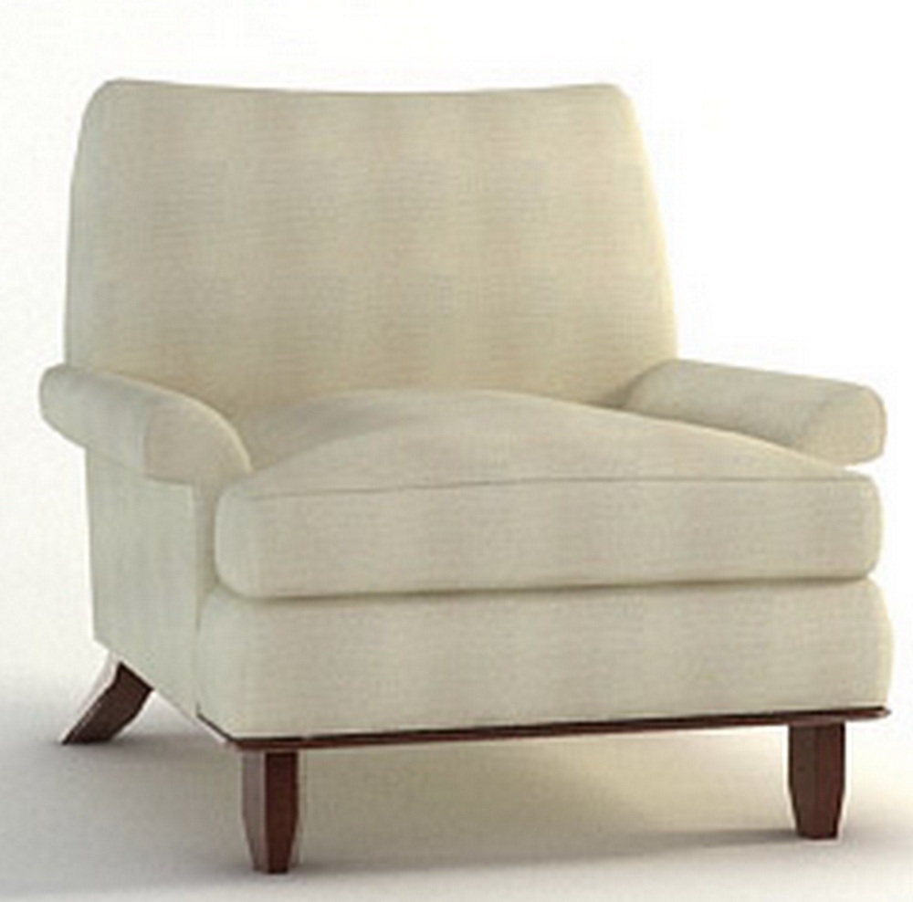 Armchair with low armrests American producer Barbara Barry. Seat on low legs with a small soft armrests. Model with a frame made of natural wood. Upholstery - textiles in white and filling - polyurethane foam. Colors to choose from the catalog factory. The model is made in art Deco style.