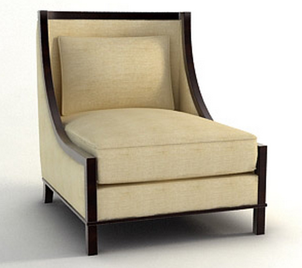 Chair American manufacturer of Barbara Barry. Model of wooden frames on low legs. Framing the tree is covered with brown lacquer. The back is high, merging smoothly with little arms and legs of the chair. For upholstery textiles used high quality beige color or a choice from manufacturer's catalogue. Featuring a modern design and practicality.