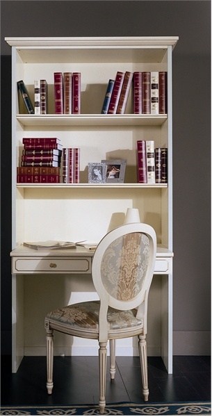 Child Cleo Scrittoio table from the Italian manufacturer Pellegatta. Desk with open shelves and without manual work. Under the top there are two drawers. The frame is made of plates with cellular filling on the basis of solid spruce, fronts of drawers made of solid wood, ramino. Finishing is performed on the basis of okrashenii in a manual in any colour from the range or by a given sample. Possible decoration in the form of painting handmade made in the technique of miniature or sketch of the customer. The surface is covered with a substance, which protects it from scratches and damages. It is proposed to combine the model with a wardrobe, bed, bedside Cabinet, dressing table, chair, stool the same collection.