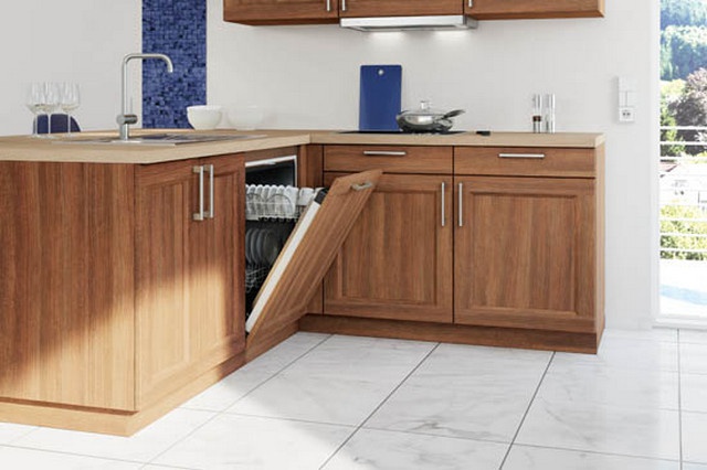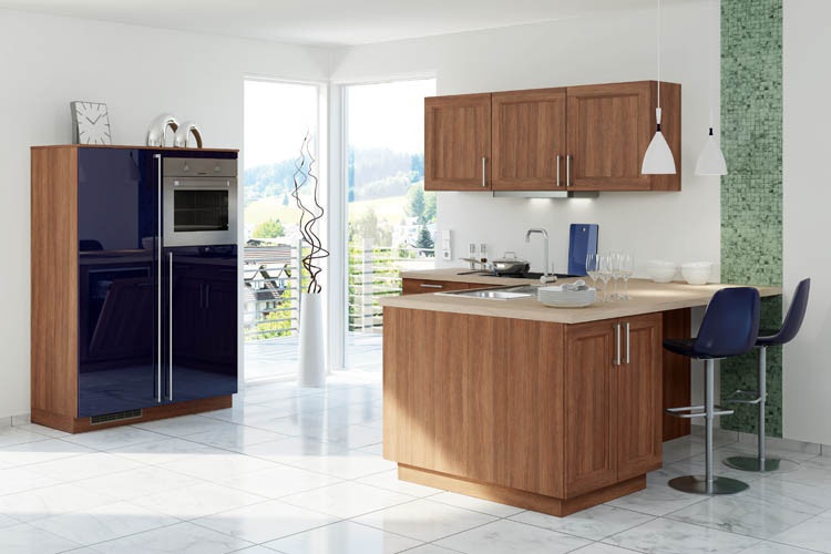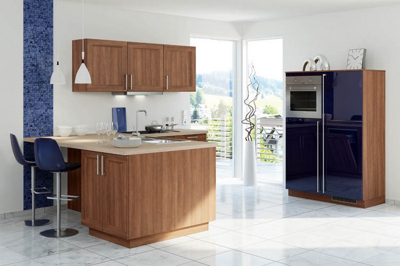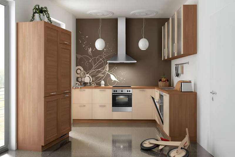 675 Venezia kitchen from the German manufacturer Bauformat. Classic German cuisine woolomin and this design is convenient lockers and shelves wooden veneer table top - array, all necessary furniture and modern equipment. Convenient compartments for utensils inside the cabinets of high quality natural materials. Dishes may be selected depending on the color preferences of the customer, in this embodiment, color - natural wood.