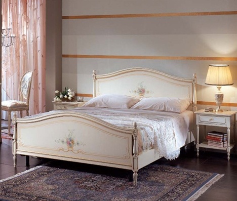 Cleo bed-2 from the Italian manufacturer Pellegattа. The hand-crafted bed. The headboard in the soft upholstery with decorative stitch. The frame is made from tamburino, plate material with honeycomb on the basis of solid spruce. The legs and support bars of the headboard and foot end made from solid wood, ramino, decorated with carvings. Finishing is done manually with the possibility of staining can choose any color from the range or by a given sample. The model can be decorated with hand painting, a picture from a catalog of factory or according to customer. The surface is covered with a substance, which protects it from scratches and damages.