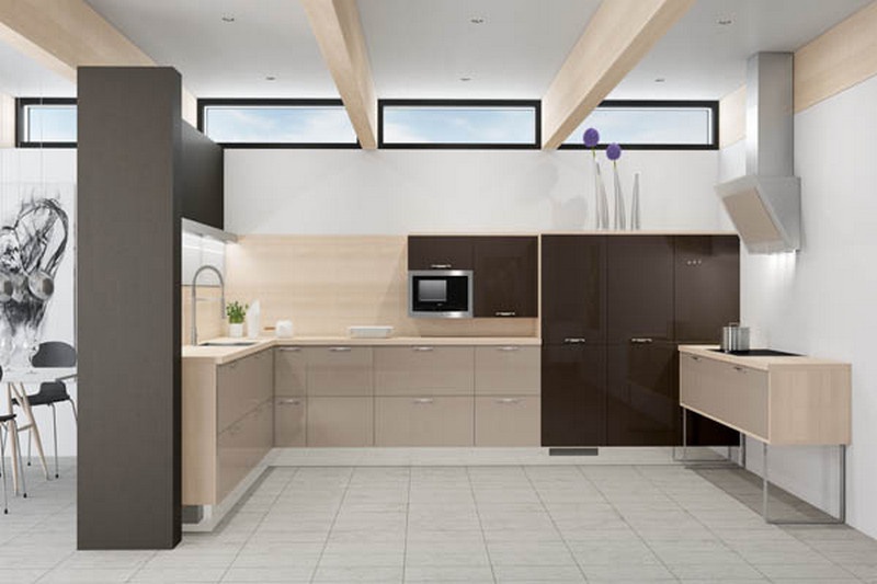 Kitchen set Murano 802, Bauformat. German kitchen made of natural solid well thought equipment, ergonomic and comfortable furniture presents in natural shades of oak and walnut. The design of modern style.