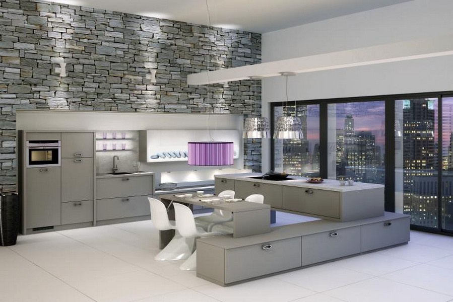 Porto 393 kitchen from Bauformat. Natural wood material: MDF. German kitchen in a modern style suited to many interiors in a minimalist style. Stylish facades of high-tech materials, attractive and comfortable furniture, as always reliably equipped with the technical part. Made in three colors: Arctic, silky-matte Magnolia, steel.